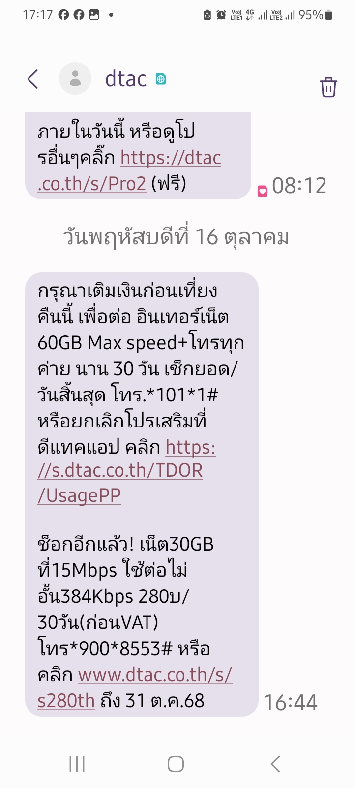 สอบถามDTAC ตามSMS ต้งเติมเงินขั้นต่ำเท่าไหร่