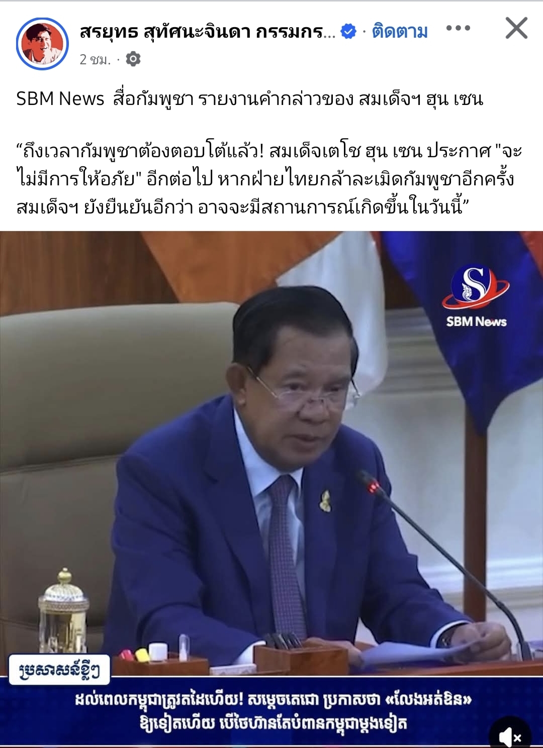 พอดูจากผู้นำเกาหลีใต้เขากล้าข่มขู่เค้าไม่เกรงกลัวเค้าเตรียมทุ่มกำลังเข้าปะทะกับเขมรถ้าเขมรเลือกที่ขัดขวางการช่วยเหลือประชาชนของเขา