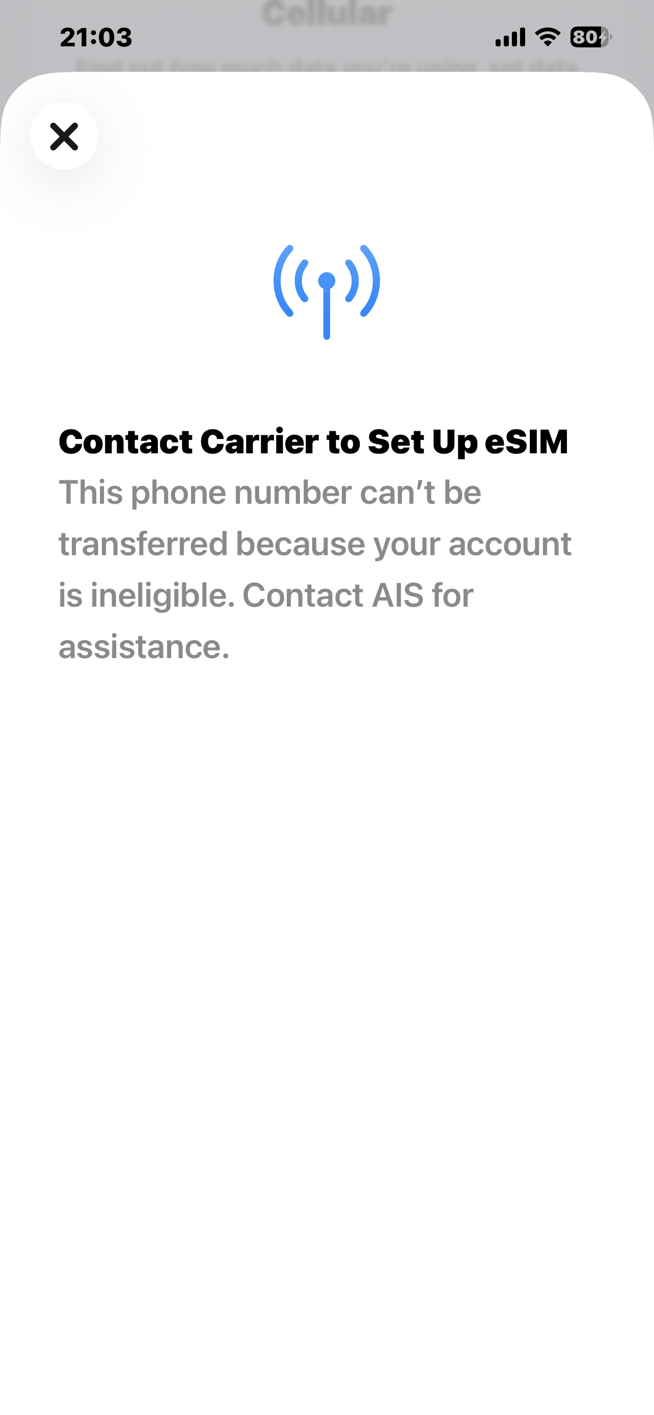 Ais ย้ายesim ไม่ได้ รบกวนด้วยครับ