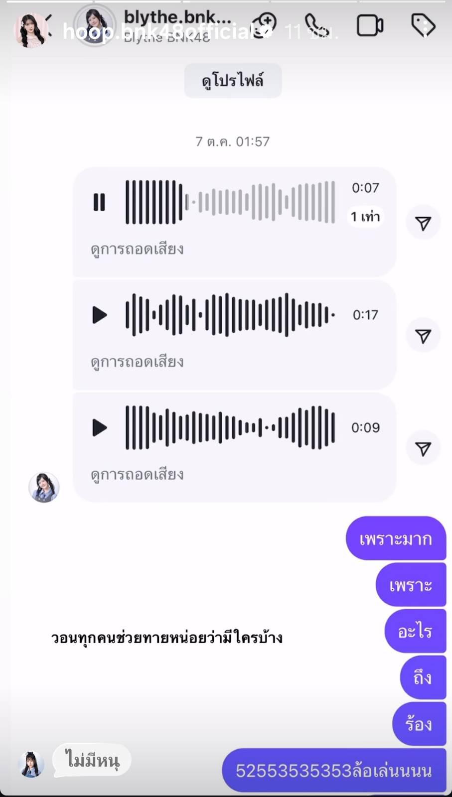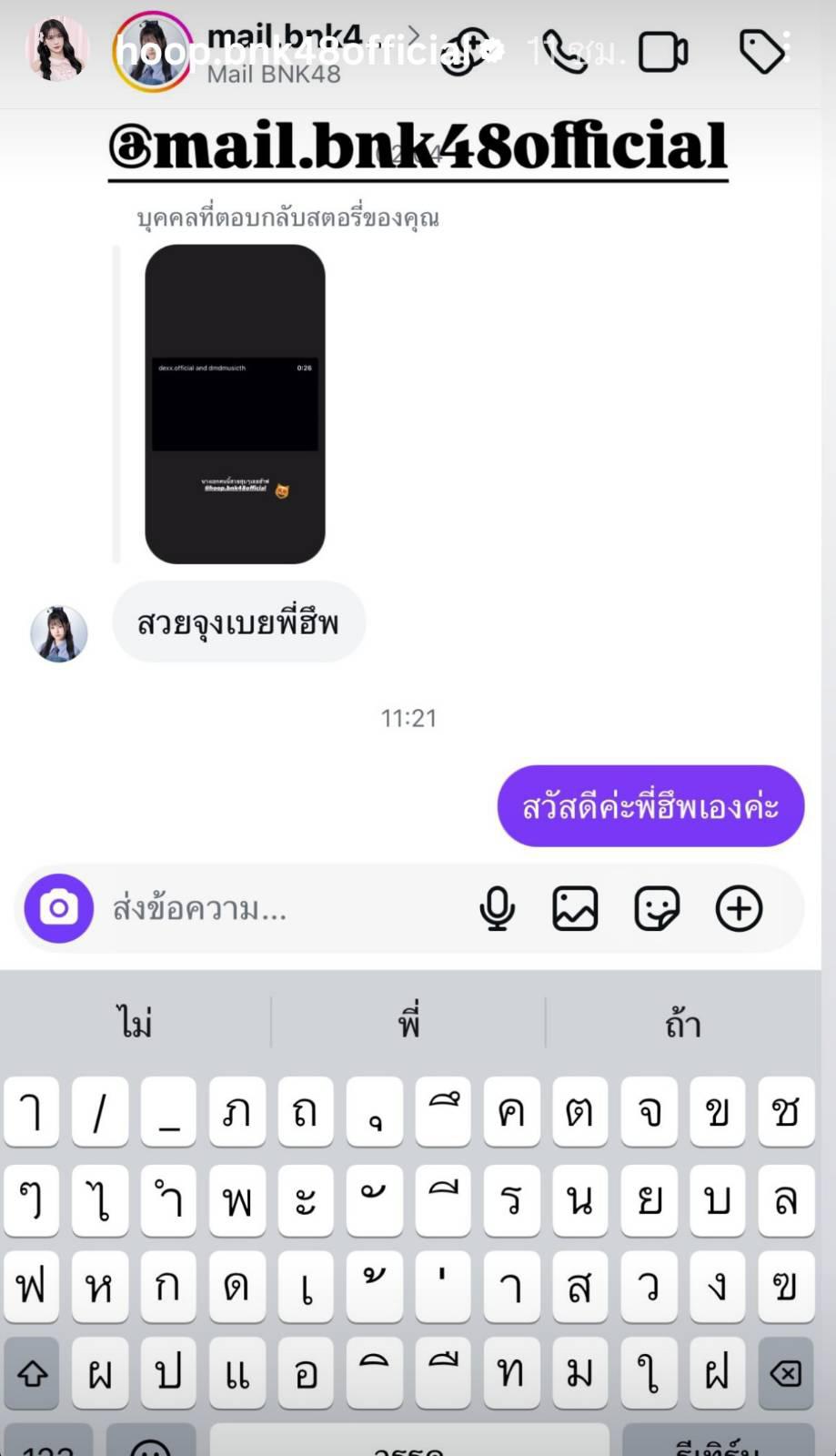 ฝากไว้ก่อนนะพี่ฮุพ รับชมได้ที่ https://www.instagram.com/stories/hoop.bnk48official/3763683916042654827?utm_source=ig_story_item_share&igsh=cDd1cnlvZHk3M3d0