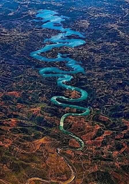 ภาพมุมสูงของแม่น้ำโอเดไลเต้ (Odeleite) หรือ ที่รู้จักคือ แม่น้ำมังกรน้ำเงิน (Blue Dragon River) 🐉