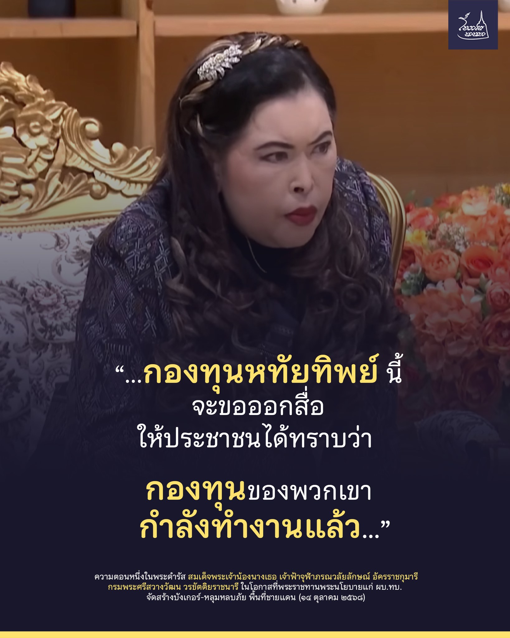 กองทุนหทัยทิพย์ จะขอออกสื่อให้ประชาชนได้ทราบว่า กองทุนของเขา กำลังทำงานแล้ว...”