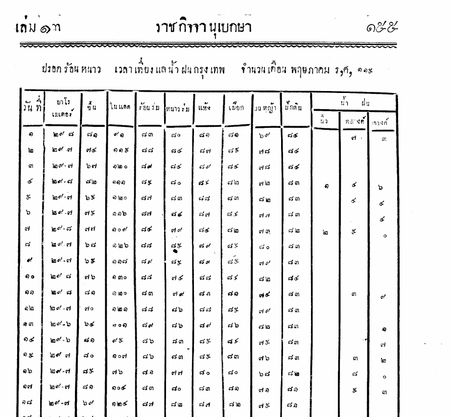 บันทึกอุณหภูมิอากาศของกรุงเทพที่เก่าที่สุดที่หาได้ในราชกิจจานุเบกษา พ.ศ. 2430-39 (ร.ศ. 115)