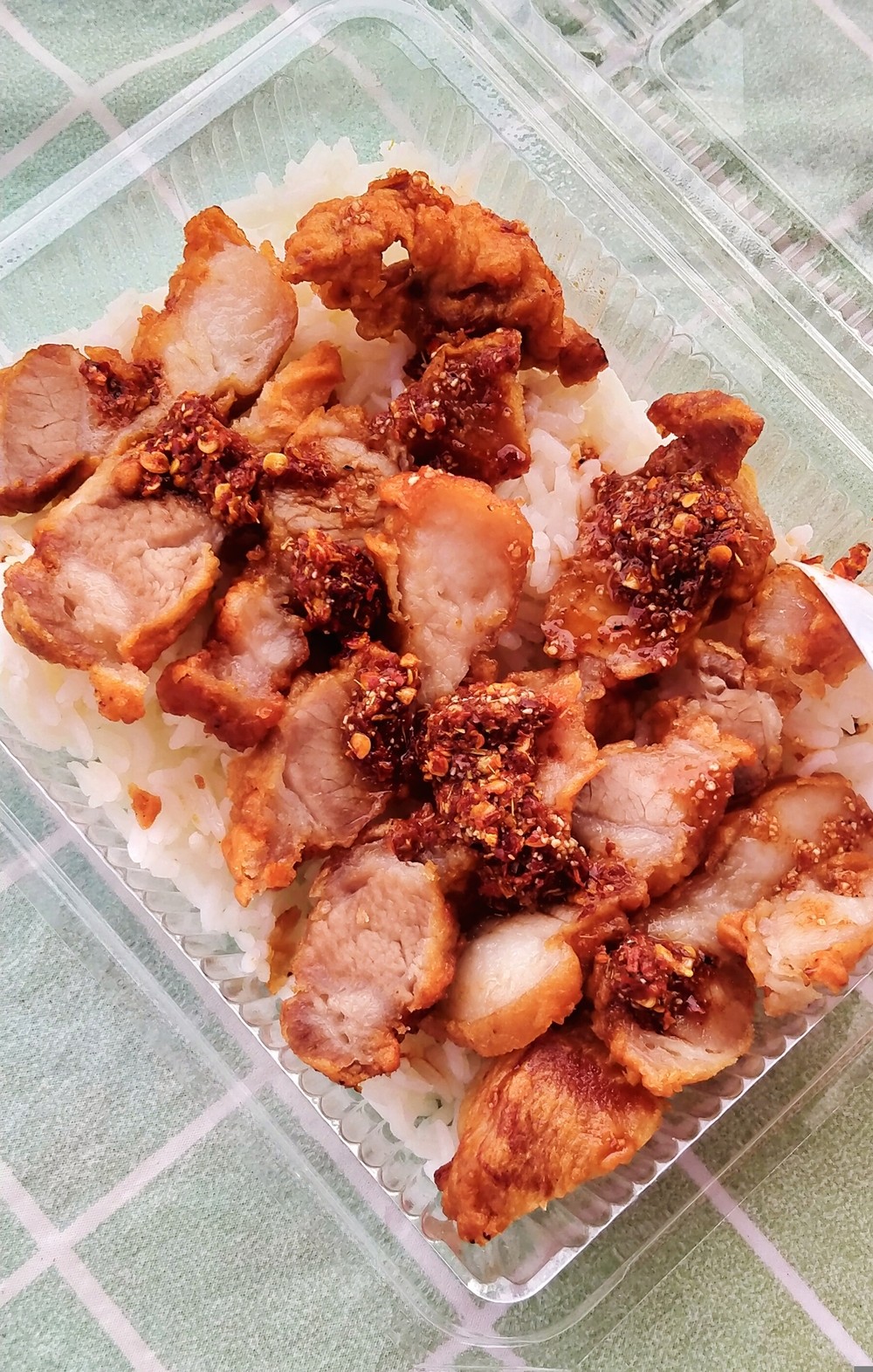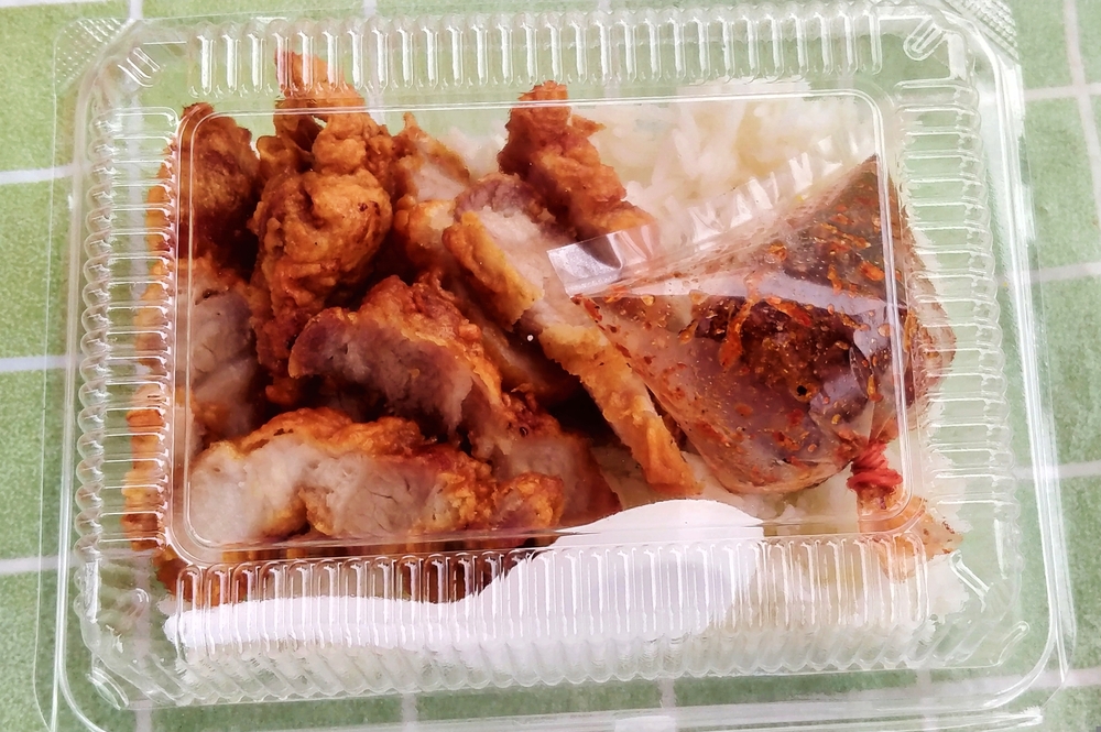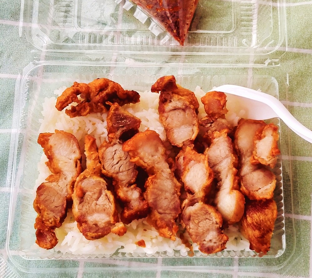 ข้าวหมูทอด + ขนมไข่ 🍖🥚