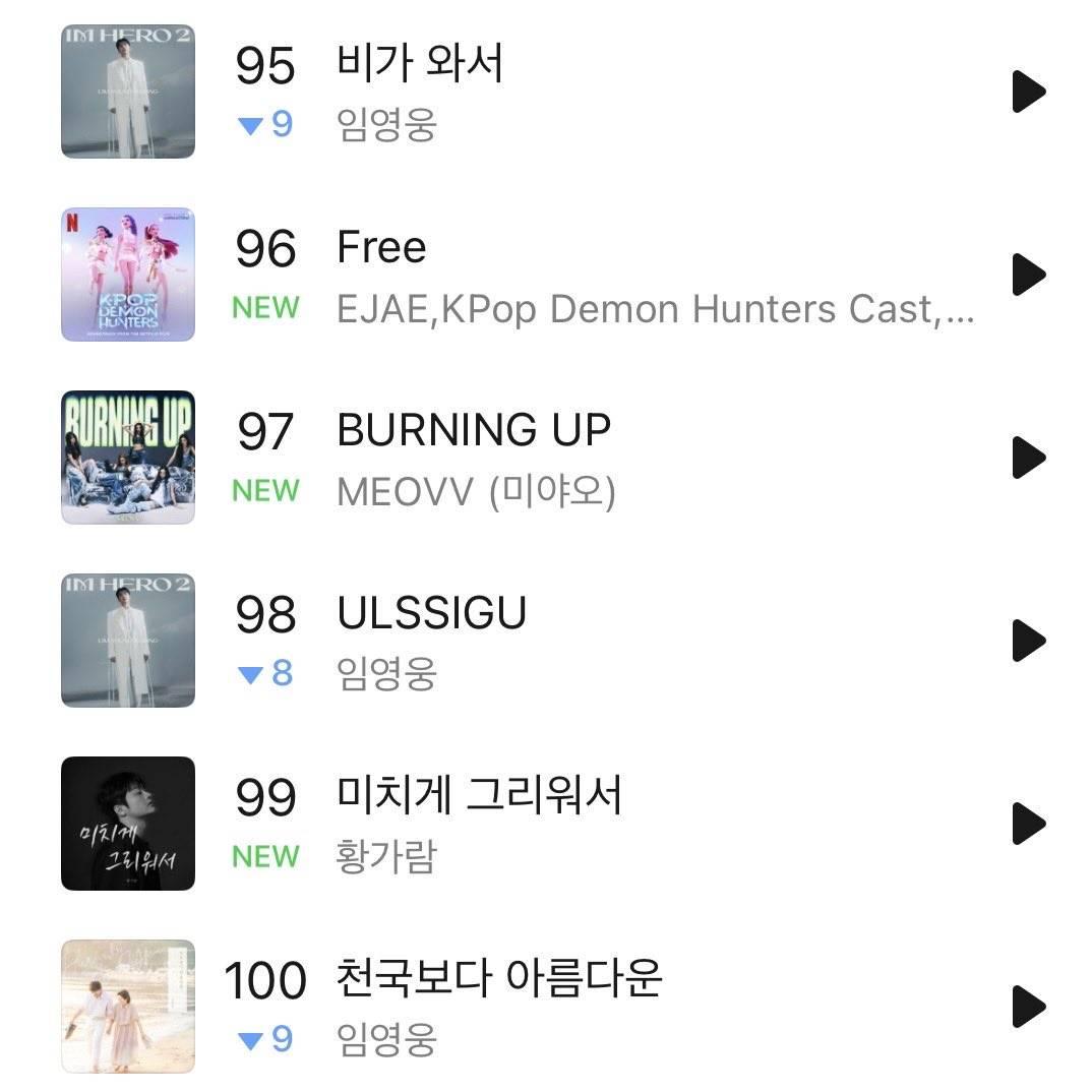 ‘BURNING UP’ 09:00 KST update; #27 Bugs (+7) #84 Genie (+7) *new peak* #97 MelOn (NEW) https://youtu.be/hlULtigNNao?si=omFbXdgfaJJEuLgD