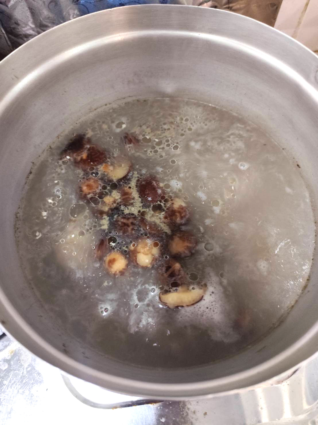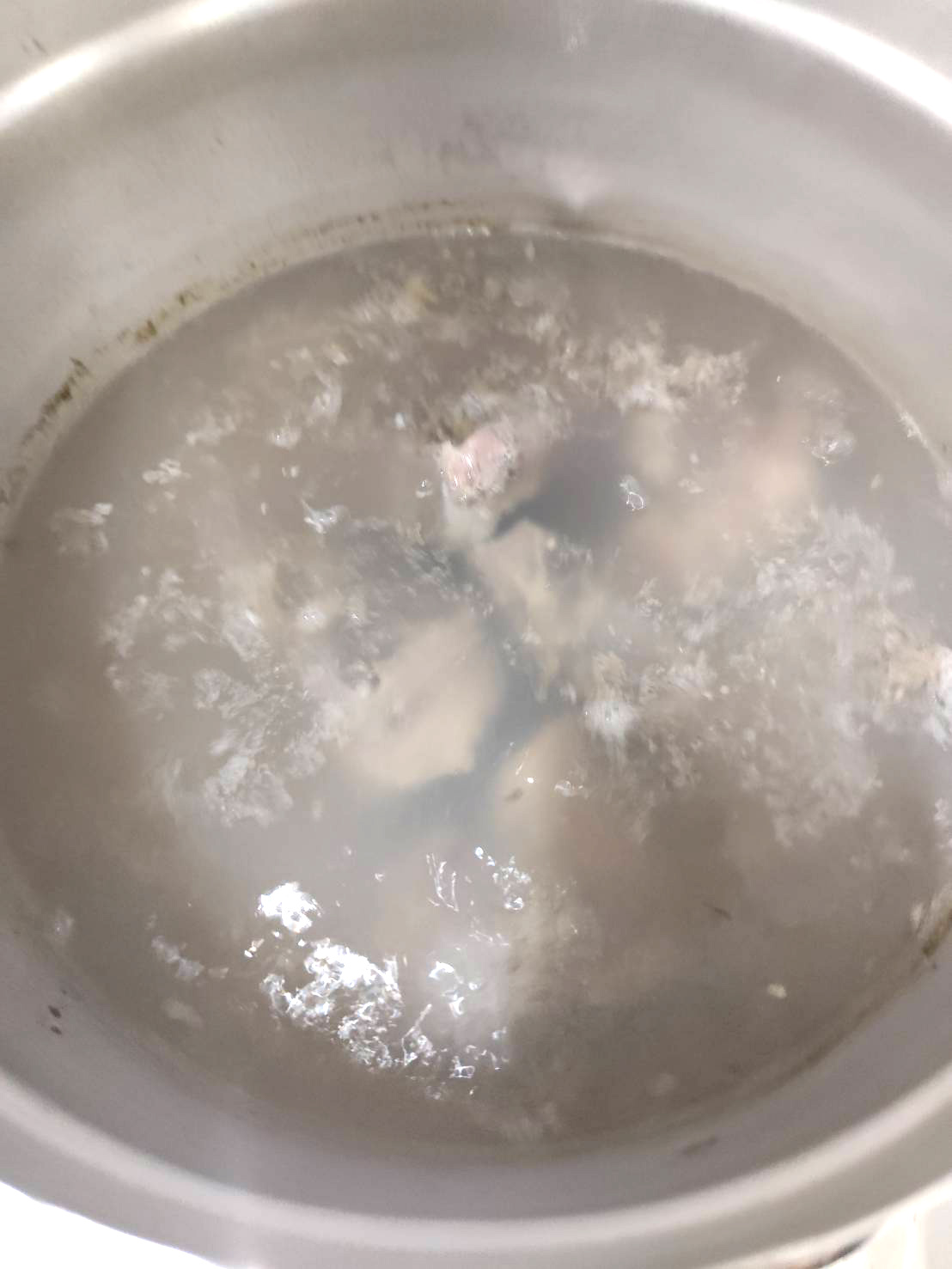 นำกระดูกหมูลงไปต้มให้เดือด และตั้งหม้อทิ้งไว้
