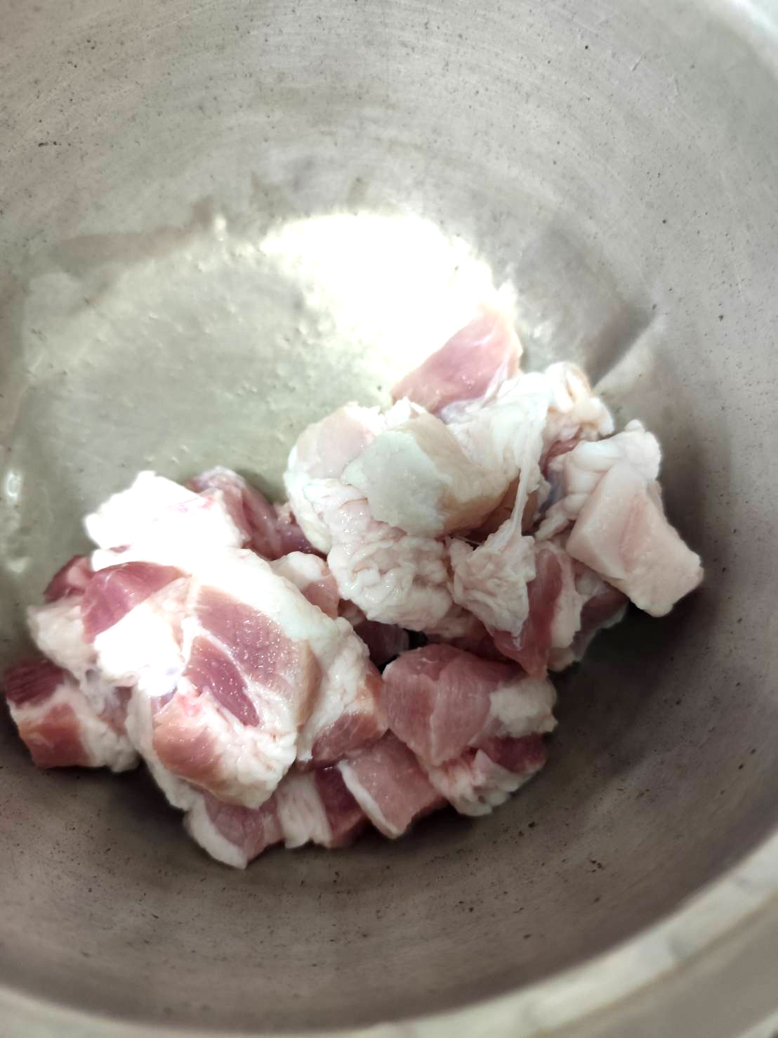 และเตรียมหมูสามชั้น สำหรับไปผัดในชุงฉ่าย
