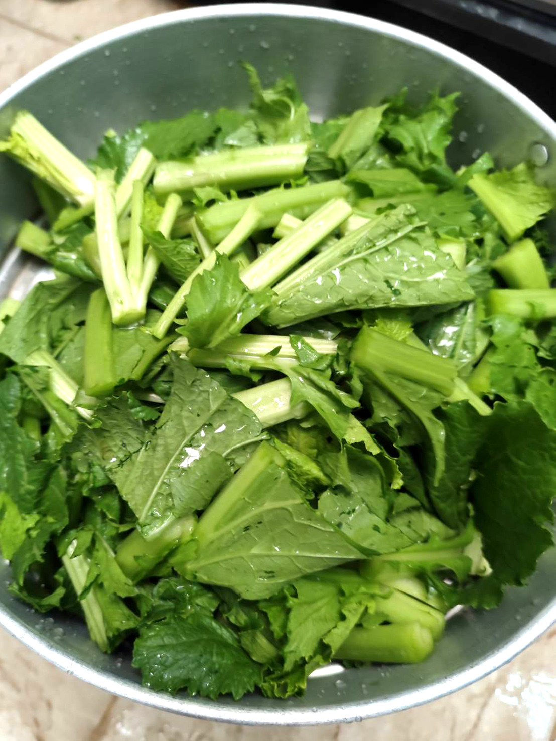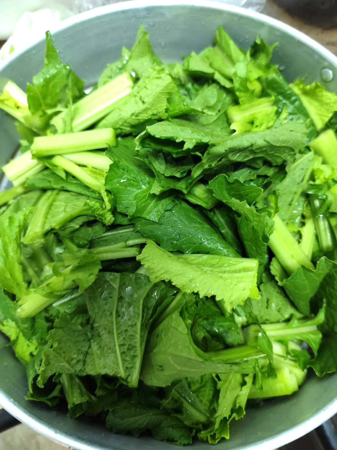 ชุงฉ่ายที่หั่นเป็นชิ้น และล้างน้ำแล้ว เราจะใช้ทั้งก้าน และใบต้มทั้งหมด
