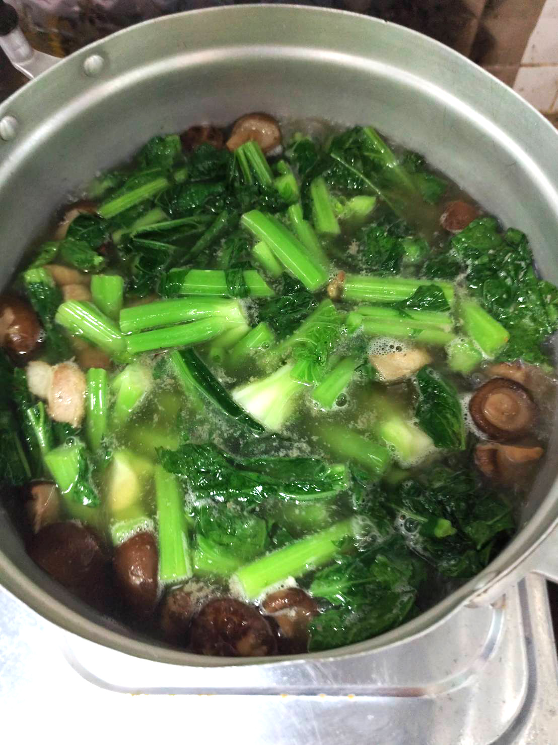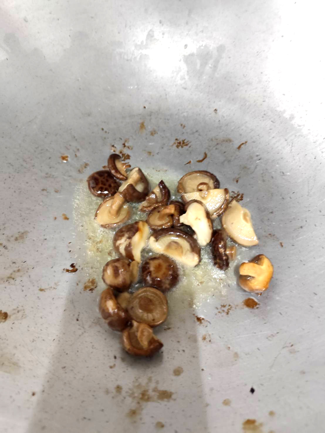 พอผัดเสร็จแล้ว ตักเห็ดหอมที่ผัดลงไปในหม้อต้มกระดูกหมูได้เลย