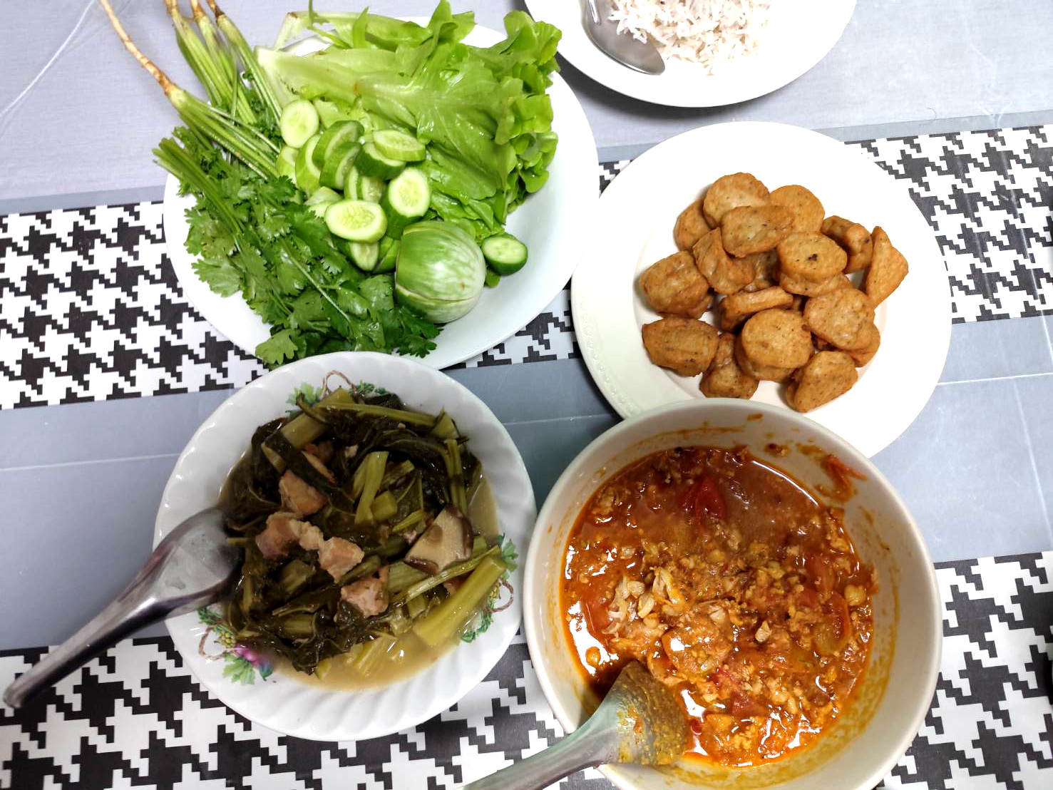 ยิ่งกินคู่กับน้ำพริกอ่องที่ทำเอง และหมูยอทอด ยิ่งอร่อยขึ้นไปอีก