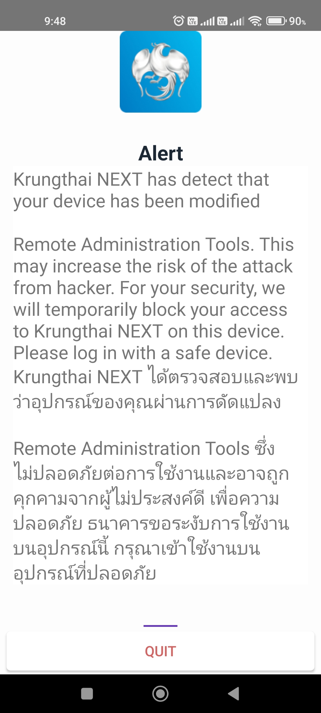 ขอแนะนำให้ลูกค้าทำการถอนการติดตั้งแอปดังกล่าวออก และทำการเข้าใช้งานแอปฯ Krunthai NEXT อีกครั้งค่ะ