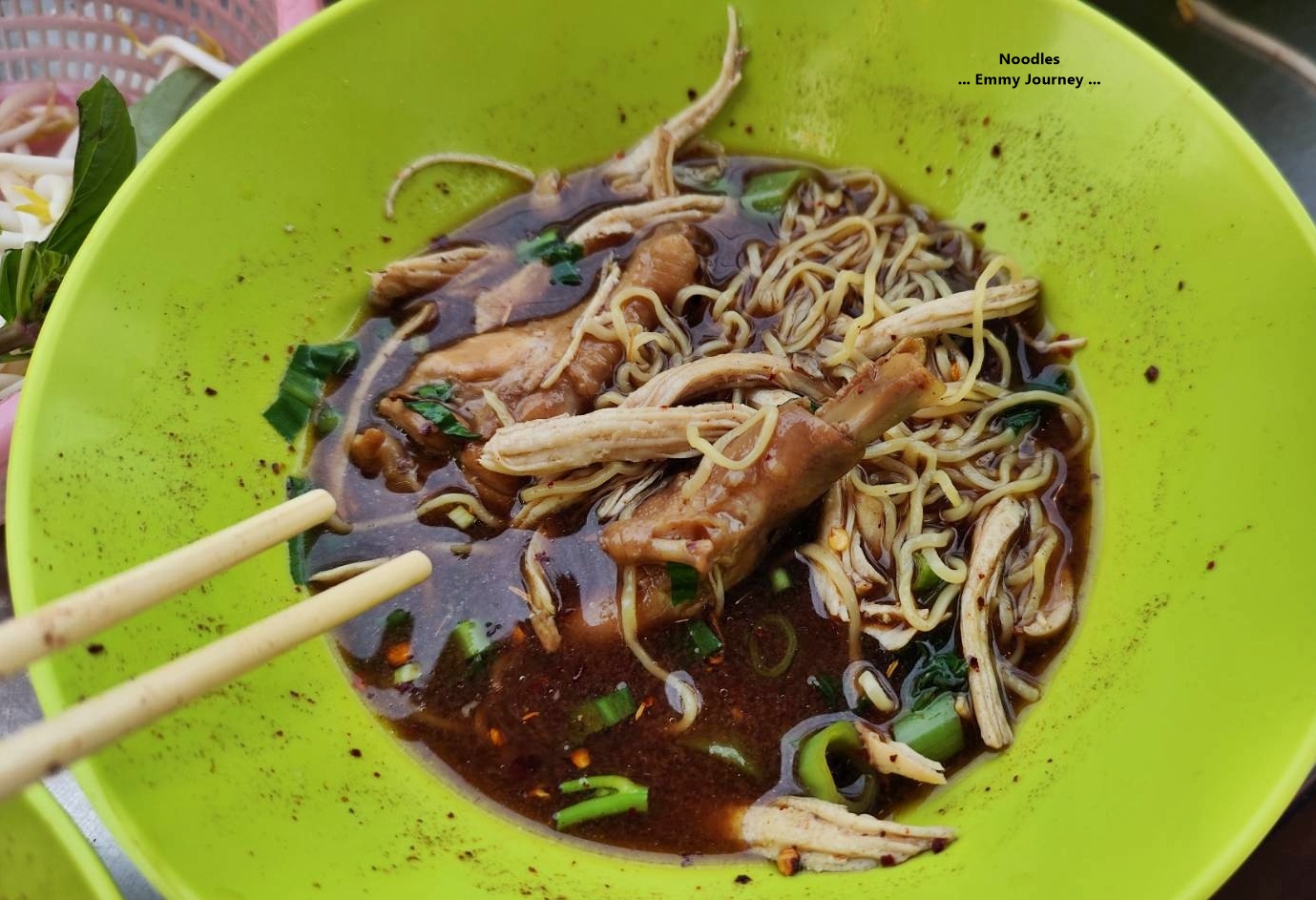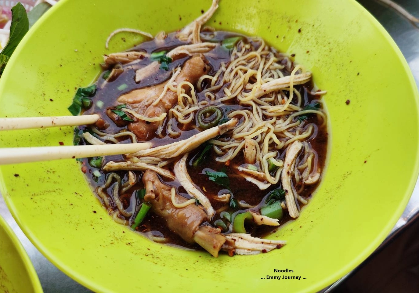 ลองสั่งบะหมี่ไก่ตุ๋นใส่ทุกอย่างมาด้วย (อันนี้ทานไปบ้างแล้ว เพิ่งนึกได้ว่าลืมถ่ายรูป) ส่วนต่างๆ ของไก่ตุ๋นมาเปื่อย เส้นบะหมี่ก็ธรรมดาทั่วไป เราว่าน้ำก๋วยเตี๋ยวไก่ยังไม่อร่อย ไม่โดนใจเรา