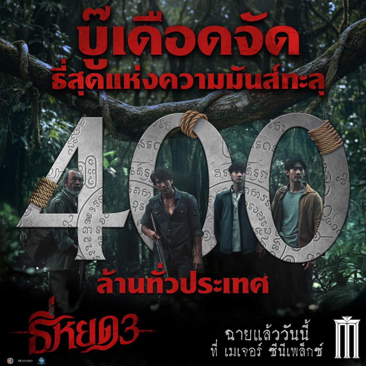 👊เดินหน้าสร้างสถิติ! “ธี่หยด 3” หลอน เดือด ทุกพื้นที่! 🔥 ทำรายได้ทะลุ 400 ล้านบาททั่วประเทศ ✨