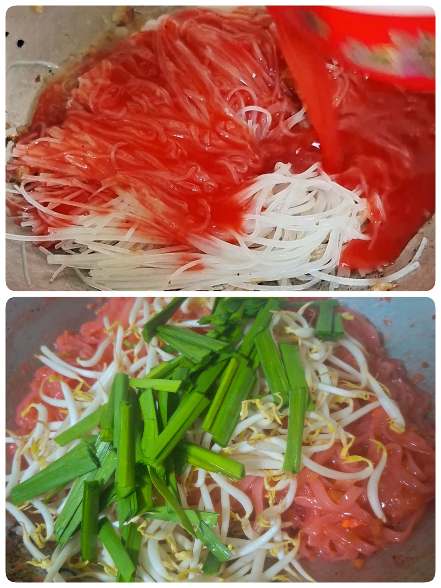 ใส่ถั่วงอก แล้วก็ใส่จาน เสริฟ...