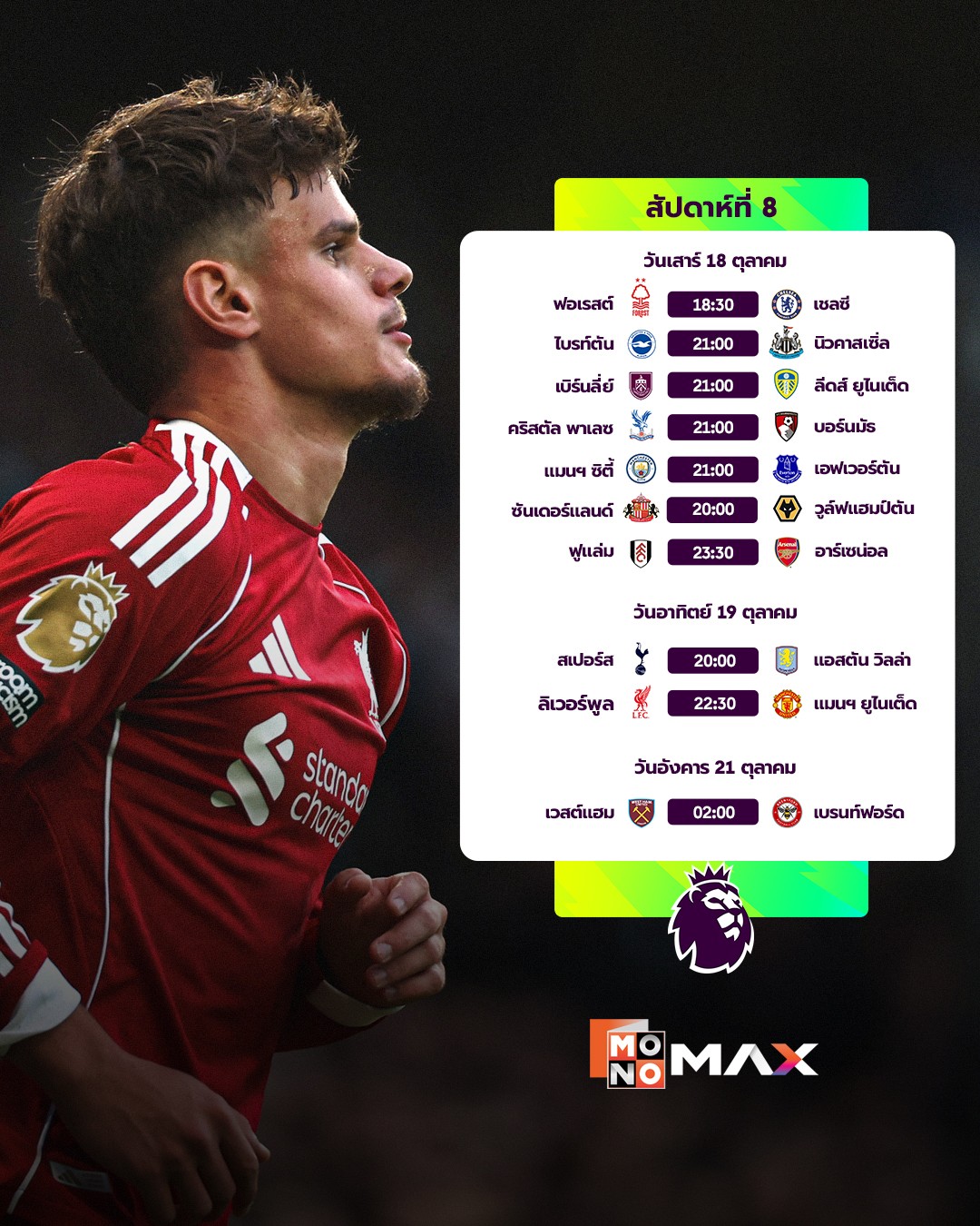 พรีเมียร์ลีค สัปดาห์นี้เป็นสัปดาห์ที่ 8 แล้ว