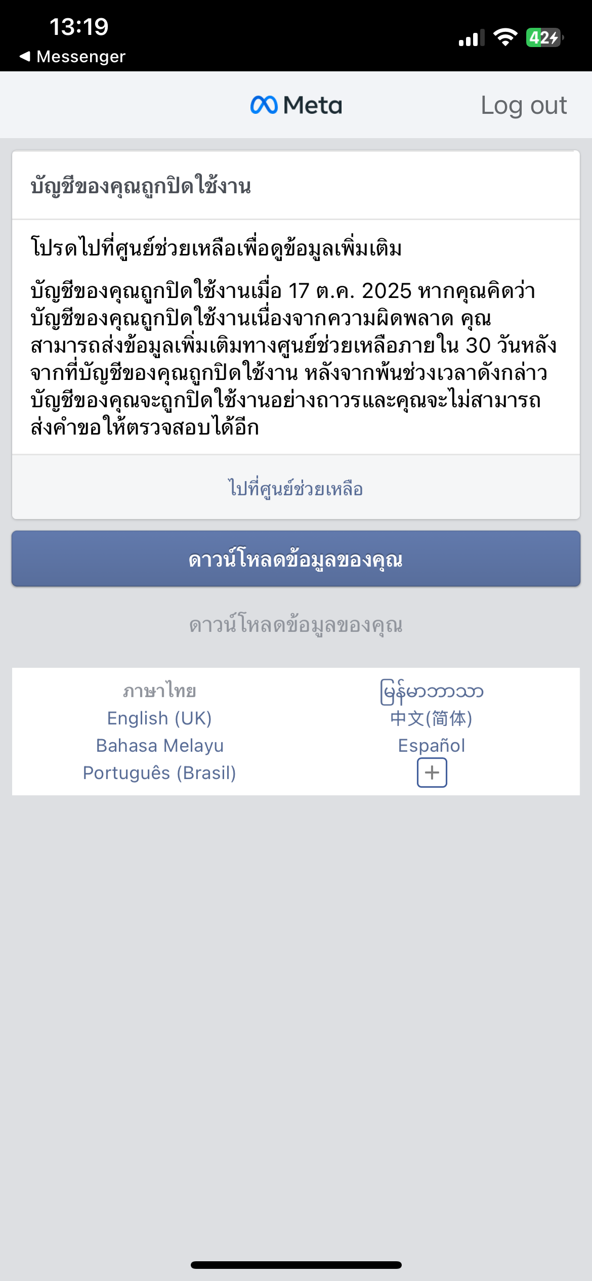 บัญชี Facebook ส่วนตัว อยู่ๆถูกระงับค่ะ คือตอนแรกใช้ได้ปกติ เช้ามาคือโดนระงับไปเฉยๆ ไม่มีเมลล์แจ้งใดๆ ต้องยื่นอุทธรณ์ยังไงคะ บัญชี IG นี้ ก็ไม่ใช่ของเรา บัญชี IGของเรา ยังใช้ได้ปกติ
