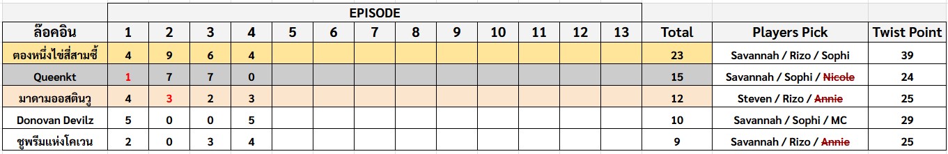 A. สามารถเลือกเปลี่ยนทีมหรือเพิ่มคน Twist Point ได้ในกรณีที่เหลือไม่ครบ 3 คน ได้ 1 ครั้ง ใช้ในตอนที่ 6 ได้แค่ 1 ครั้งเท่านั้น