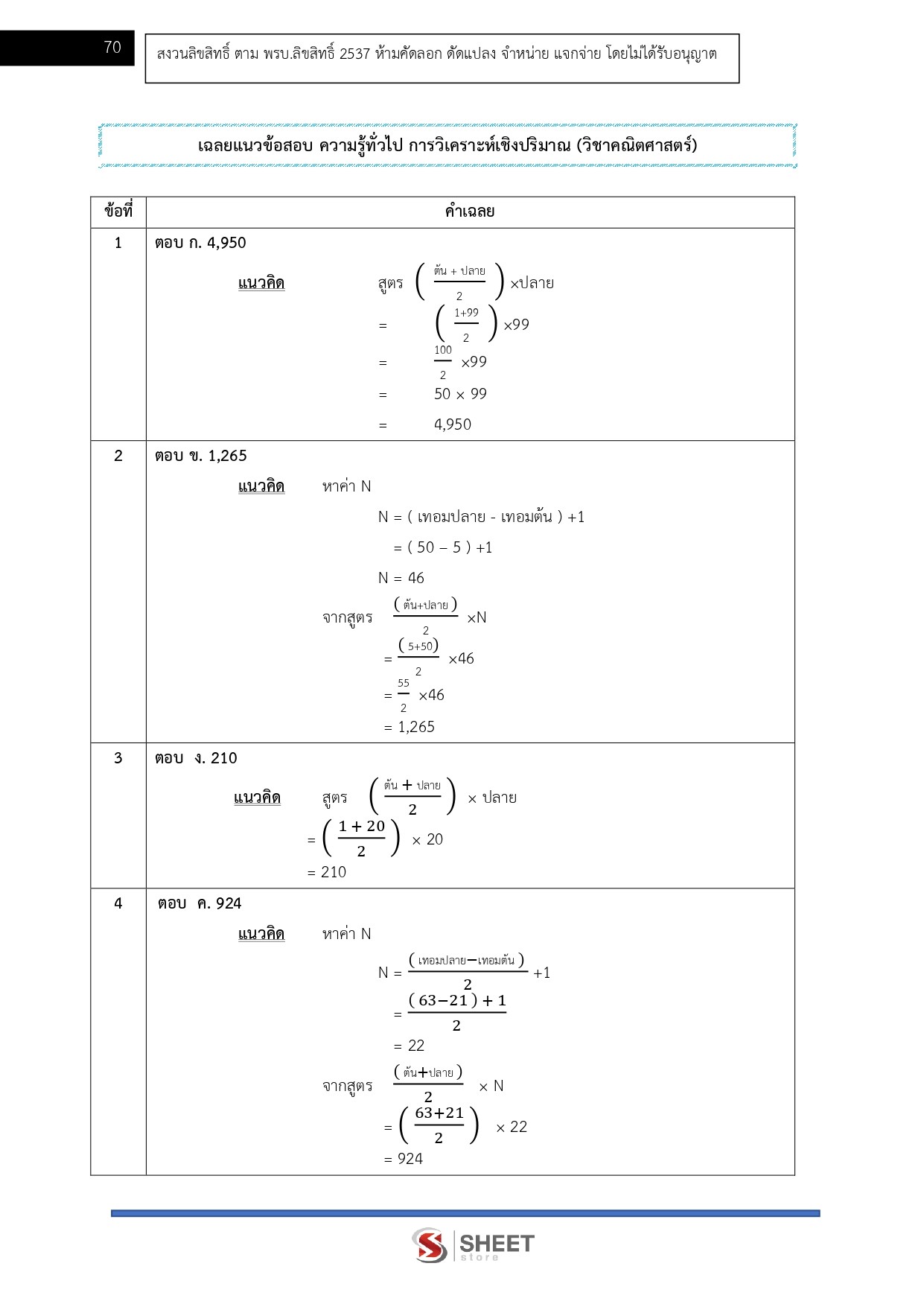 – แนวข้อสอบ ความรู้ทั่วไป การวิเคราะห์เชิงปริมาณ (วิชาคณิตศาสตร์) พร้อมเฉลย และคำอธิบายหลักการคิด