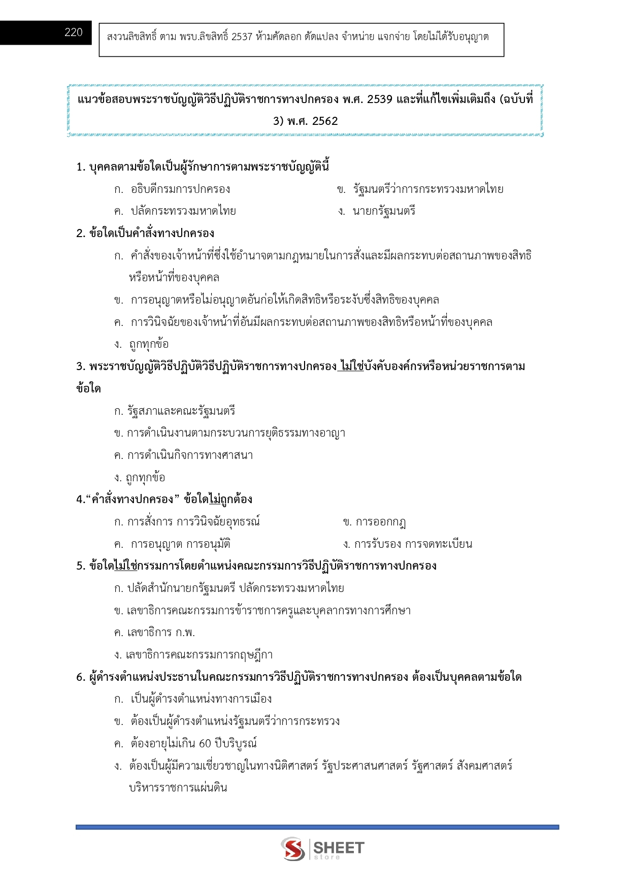 – แนวข้อสอบพระราชบัญญัติวิธีปฏิบัติราชการทางปกครอง พ.ศ. 2539 และที่แก้ไขเพิ่มเติม