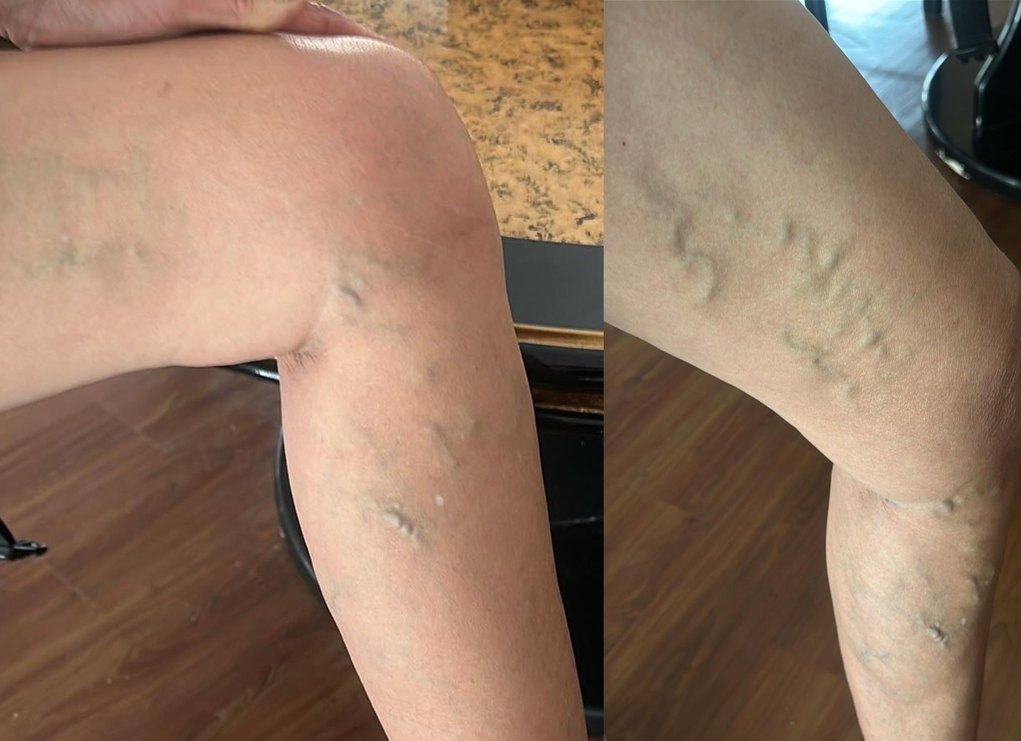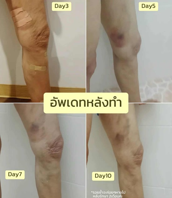 ดูในรูปอาจจะเห็นไม่ชัดเห็นแค่รอยช้ำ แต่ความจริงแล้วเส้นเลือดขอดหายไปเกือบหมดเลยนะ ตรงที่เส้นใหญ่ขดๆก็แทบไม่เหลือแล้ว