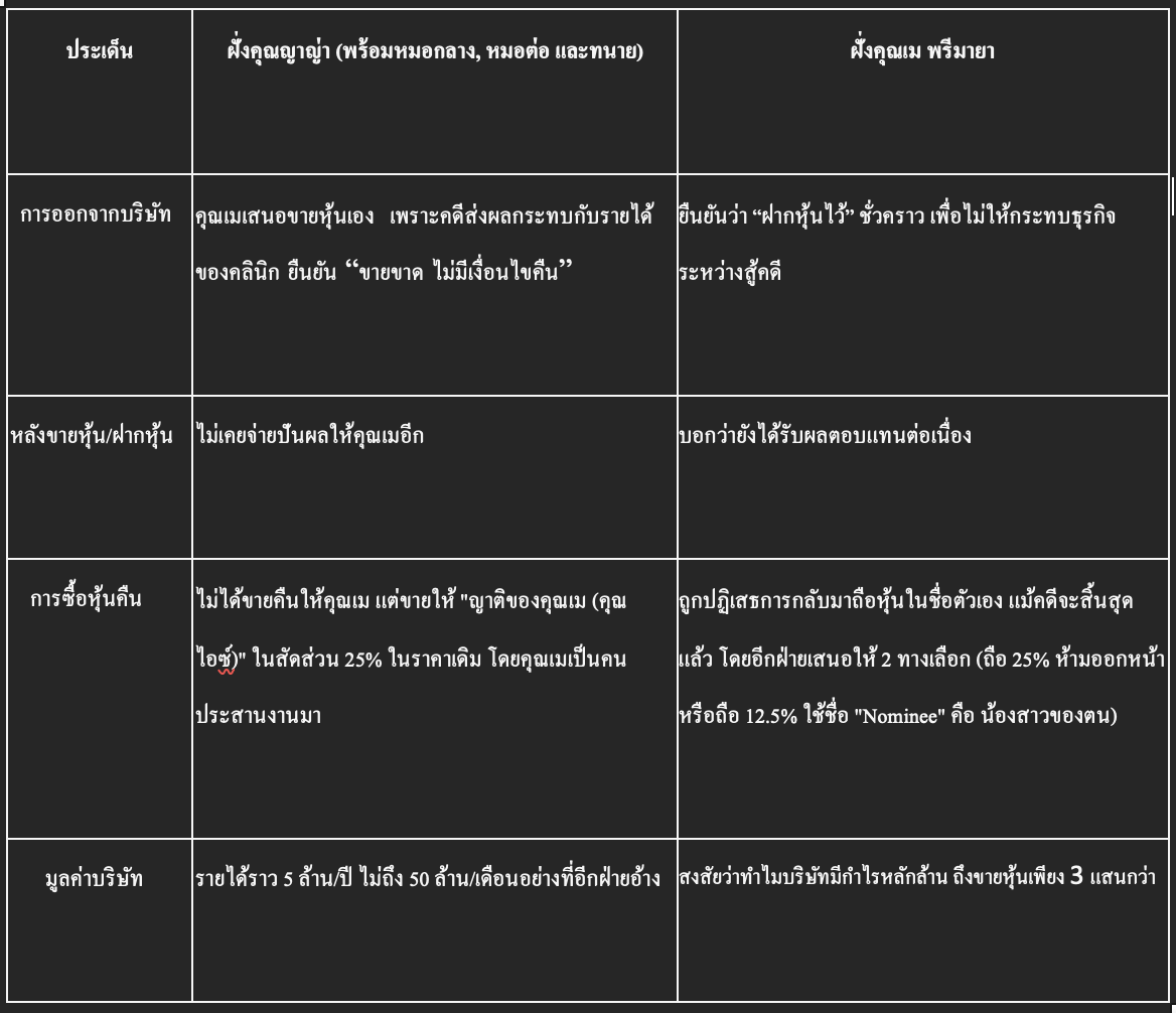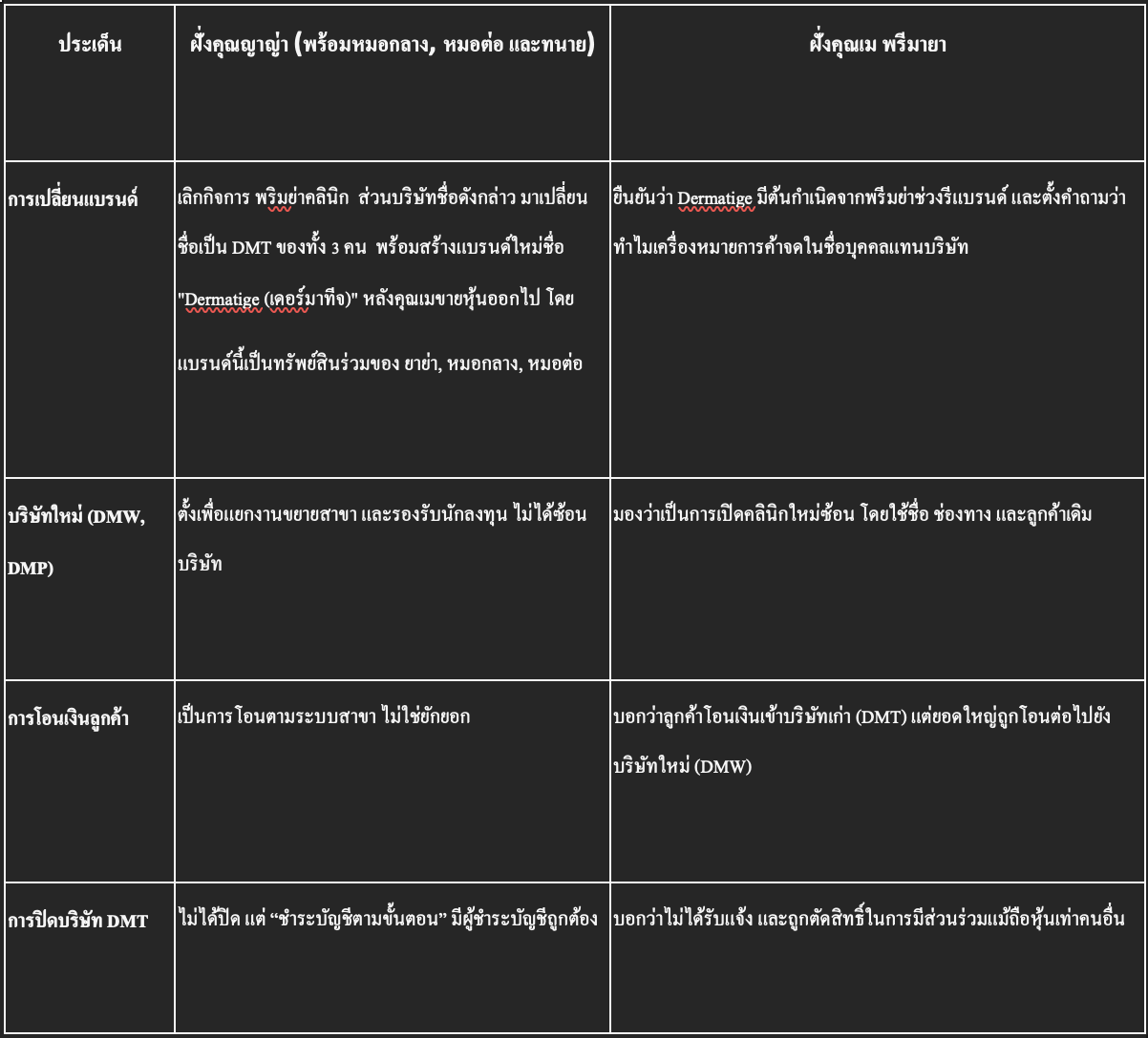 ไม่ได้รู้เลยว่านี่คือแบรนด์ใหม่คลินิกใหม่ คนละหุ้นแล้วจ้า พอเคลียร์คดีจบ ก็หวนกลับมาทวงสิทธิ์ ขอส่วนแบ่ง ขอชื่อ ขอที่ยืน ขอซื้อหุ้น