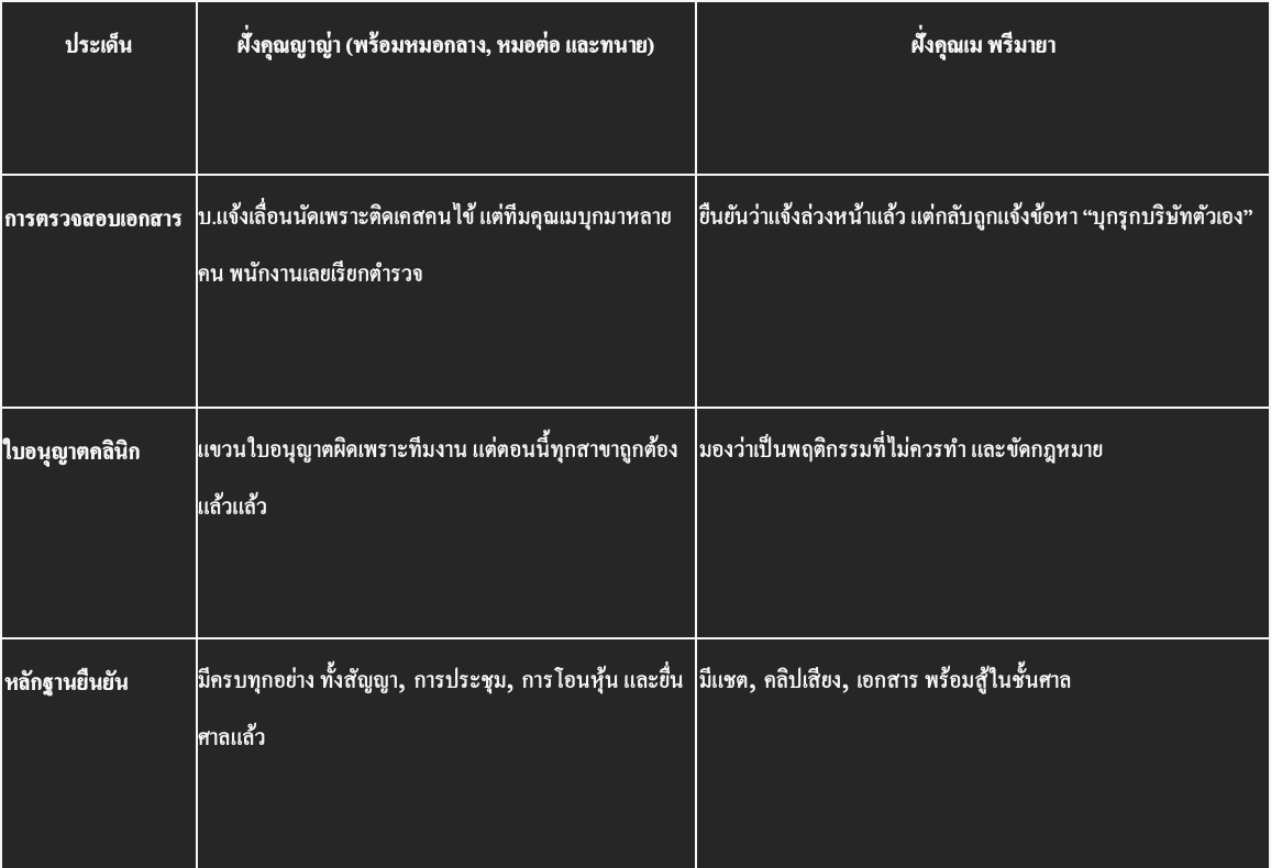ระหว่างที่คดีอยู่ในกระบวนการศาล ฝั่งที่รู้สึกเสียเปรียบก็เลย “เลือกสู้ทางสื่อ” ก่อน เริ่มจากร้องเรียนตามรายการ ออกรายการใหญ่ ไลฟ์สดรัว ๆโพสต์เป็นชุด ๆ จนกลายเป็น ดราม่าร้อนแรงทั่วโซเชียล แต่พอเวลาผ่านไป คนดูเริ่มตั้งสติ ใช้วิเคราะห์มากกว่าความรู้สึก หลายเสียงก็เริ่มพูดตรงกันว่า