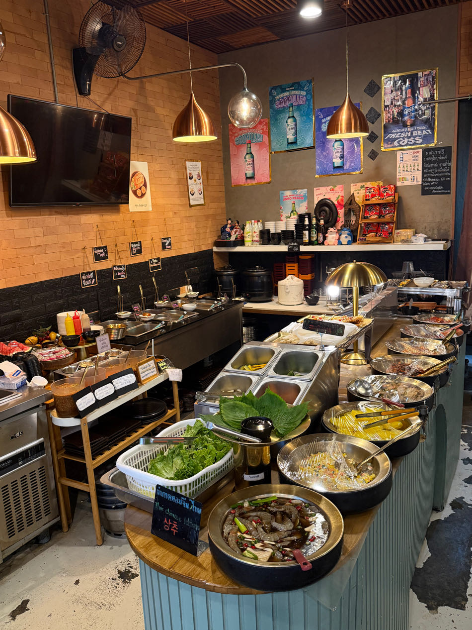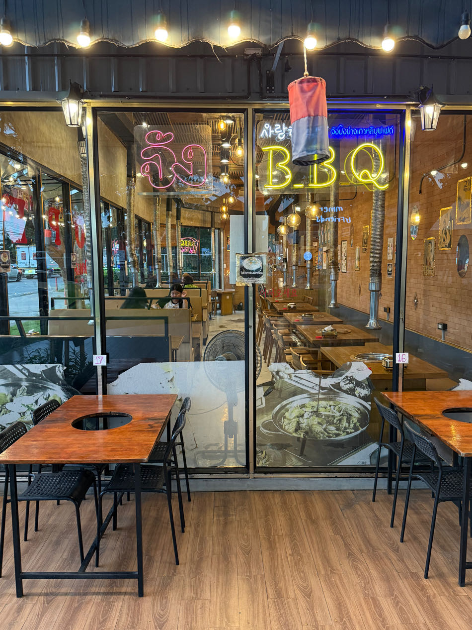 วันนี้ขับรถหาของกินย่านบางนาช่วงเย็นไม่รู้จะทานอะไรดี แฟนผมหันไปเห็นร้านปิ้งย่างบาร์บีคิวเกาหลีร้านนี้เข้า เลยเลี้ยวกลับรถเข้าไปชิมกันทันที วันนี้เลยแวะมาเล่าให้ฟังครับ