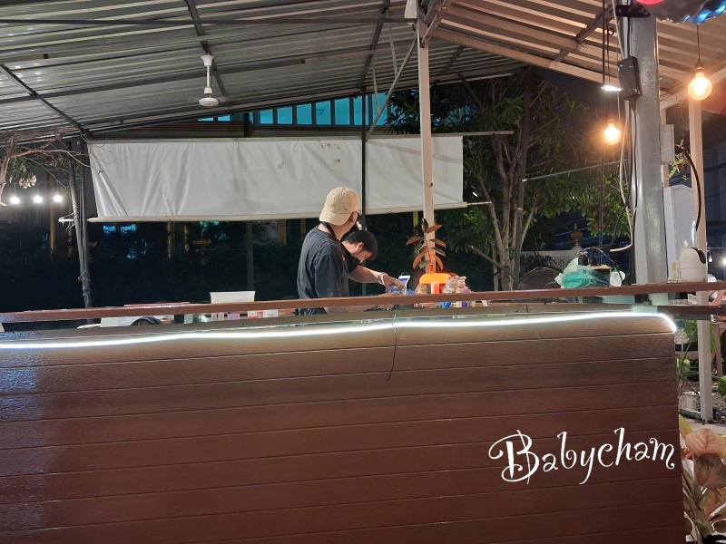 ตรงกลางคือ เคาน์เตอร์ของร้าน ไว้รับออเดอร์ ไว้เคลียร์บิล ไว้ตรวจเช็ครายการจากครัวก่อนเสริฟ ไว้ให้ลูกค้าร้องขอออเดอร์เพิ่ม สรุปคือ ทุกอย่างแหละ