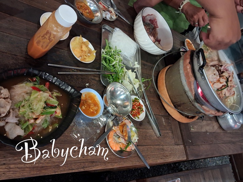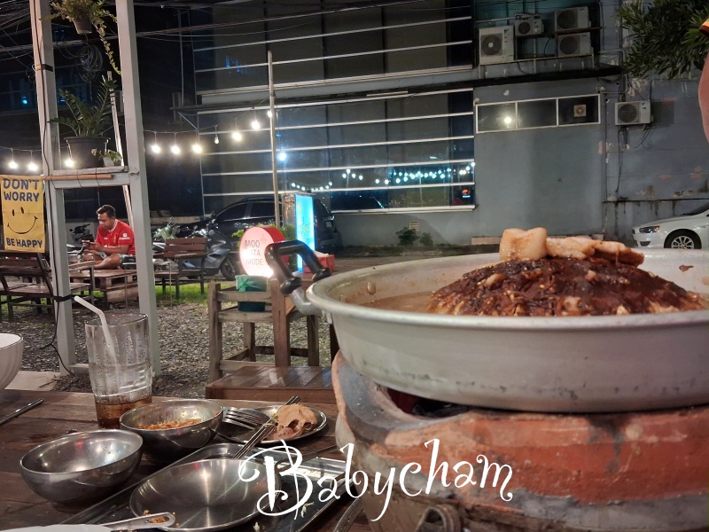 ไม่ได้กินแบบนี้นานมากเลย อร่อยและได้บรรยากาศเก่าๆ จำได้ว่า ก่อนมีครอบครัว พี่ๆเคยสั่งหมูกะทะจากร้าน ก็มีพนักงานขี่รถหอบกะทะและเตามาให้พร้อมกับถ่าน เนื้อสัตว์ ผัก และรายการต่างๆที่สั่ง กินเสร็จก็ไม่ต้องล้าง รุ่งขึ้น พนักงานจะขี่รถมาตามเก็บคืนเอง ...เอ๊ะ แก่แล้วแน่ๆ นึกถึงความหลัง
