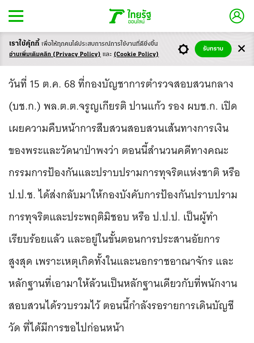 "บิ๊กเต่า" เผย ป.ป.ช. ส่งคดีวัดนาป่าพงกลับให้ ป.ป.ป. ทำต่อ สอบเส้นทางเงินพระ–มูลนิธิ–สีกายุ ขยายผลบัญชีกว่า 20 รายการ ส่วนหมายจับขึ้นอยู่กับข้อมูลหลักฐาน คาดมีคำตอบเร็วๆ นี้ #