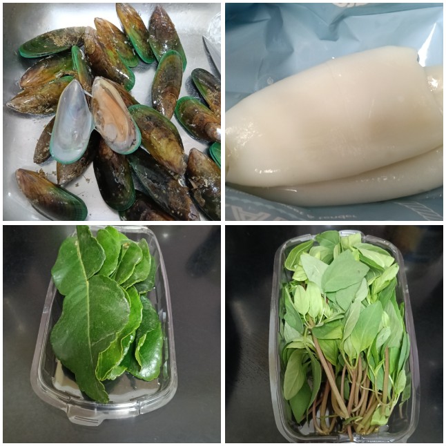 ล้างทำความสะอาดหอยแมลงภู่ในสะอาด ต้มน้ำเดือดเพื่อทำความสะอาดเศษดินและสิ่งสกปรกต่างๆ แล้วก็นำมาล้างในน้ำสะอาดอีกสัก 2-3 รอบ