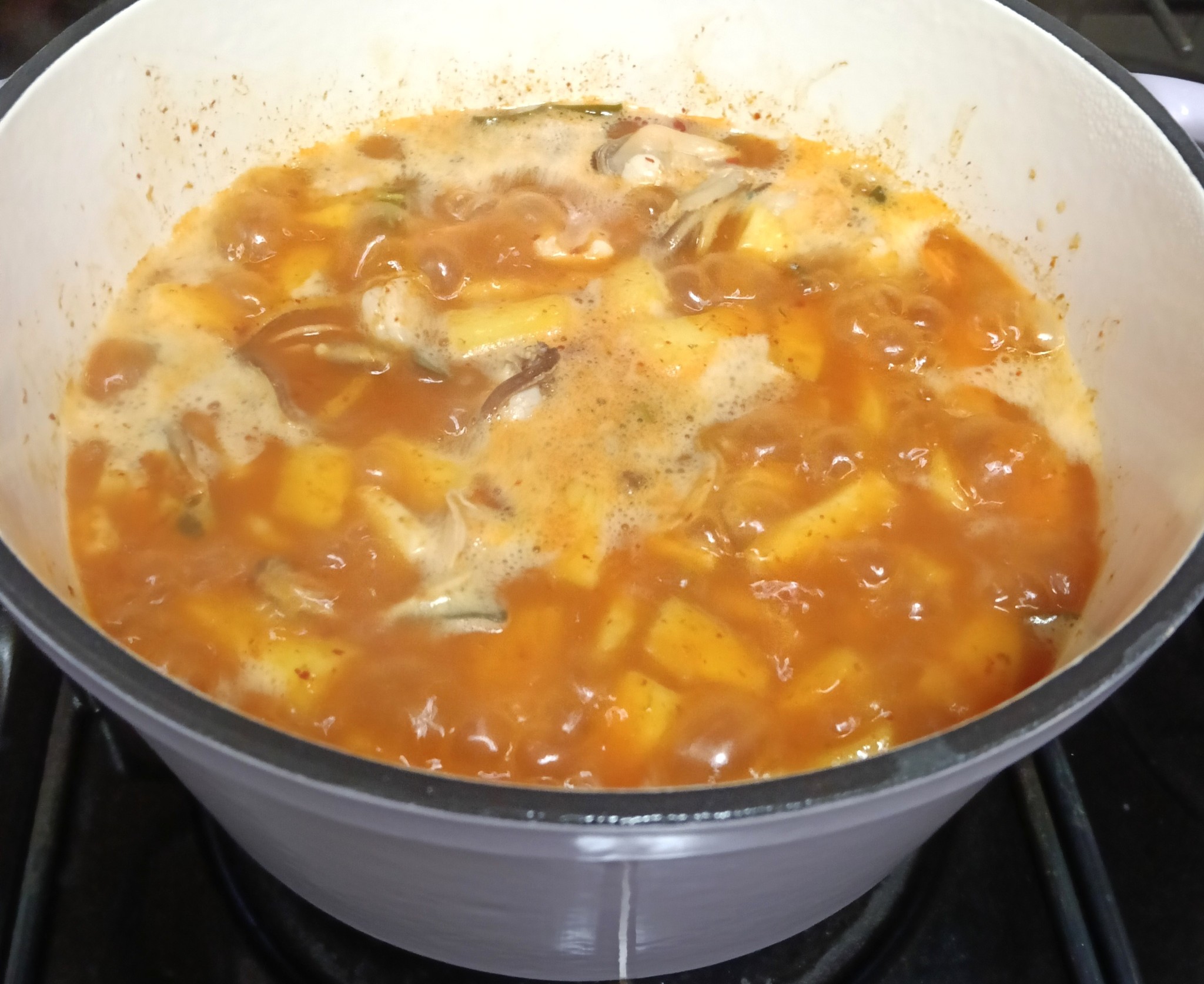 คนให้เข้ากัน ปิดฝาให้หม้อเดือด แล้วปรุงรสด้วยน้ำปลา น้ำตาลมะพร้าว หรือใครอยากใส่ผงปรุงรสอะไรเพิ่มเติมก็ได้
