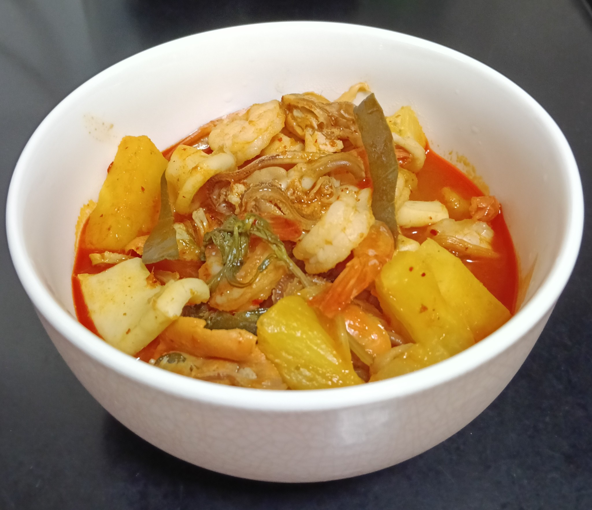 เมนูวันหยุด แกงเผ็ด(ไม่)เข็ดรักครั้งแรก หรือแกงเผ็ดสับปะรดทะเลรวมมิตร #อาหารไทยในต่างแดน 🍛🍤🦐🦑🐚🍍🌶️🌶️🌶️🌶️