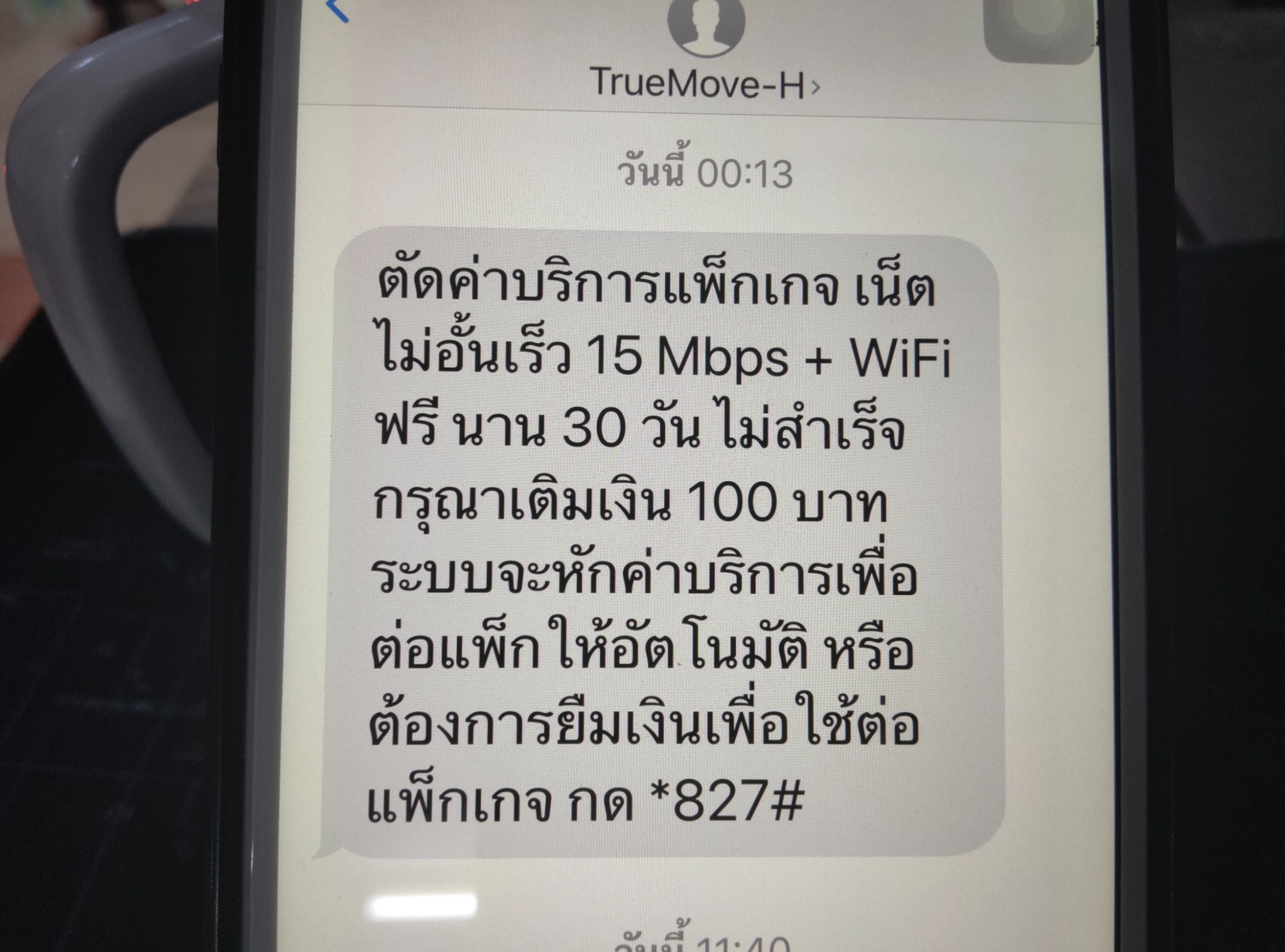 True ต่อโปรไม่ได้แล้วมีข้อความให้เติมเงิน