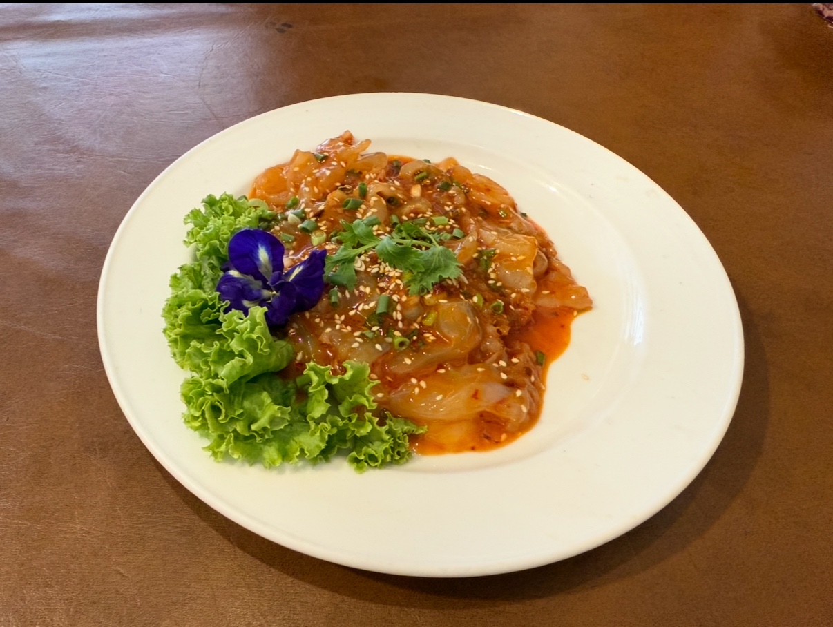จานใหญ่ กรอบเด่งหอมน้ำมันงา และปรุงรสเผ็ดนิดๆ อร่อยดี แต่ส่วนตัวติว่ามันมีเมือกมากไปนิดนึง