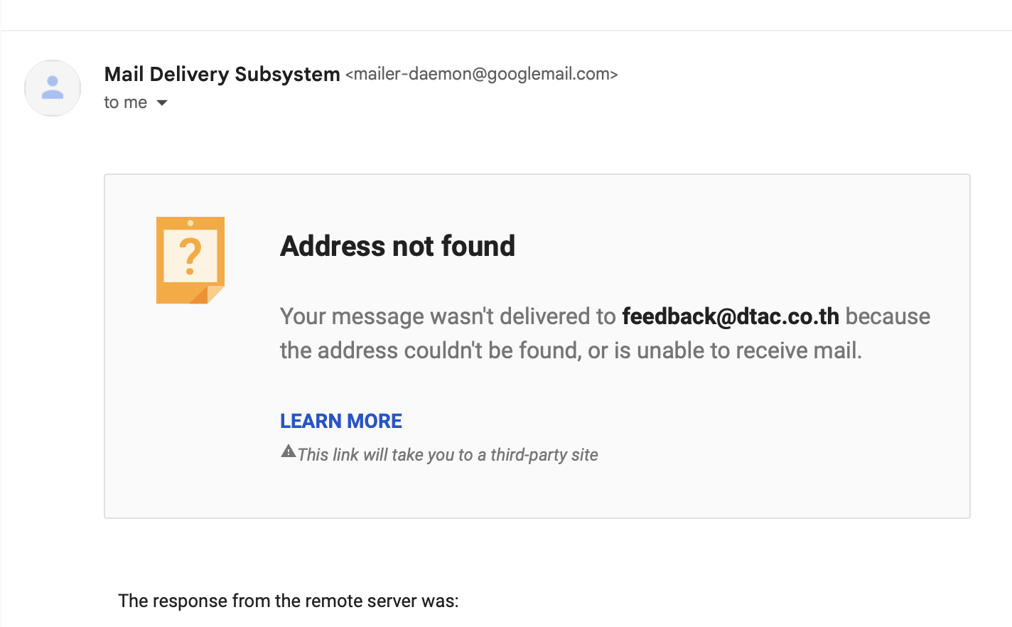ติดต่อ support ผ่าน email แล้วส่งเมลไม่ได้ครับ