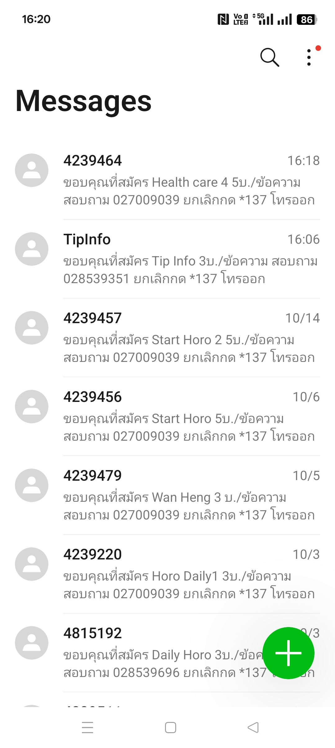 SMS คิดเงินพวกนี้มาตลอด ต้องคอยกดยกเลิก มาใหม่ตลอด 2-3 สัปดาห์มาครั้ง เราแน่ใจว่าไม่ได้ไปกดสมัครอะไรเลย โคตรเสียเวลา ใครจะบอกว่ากด *137 ก็ยกเลิกได้แล้ว แต่มันก็ไม่ควรมาตั้งแต่แรกไหม แล้วถ้าคนแก่สูงอาย