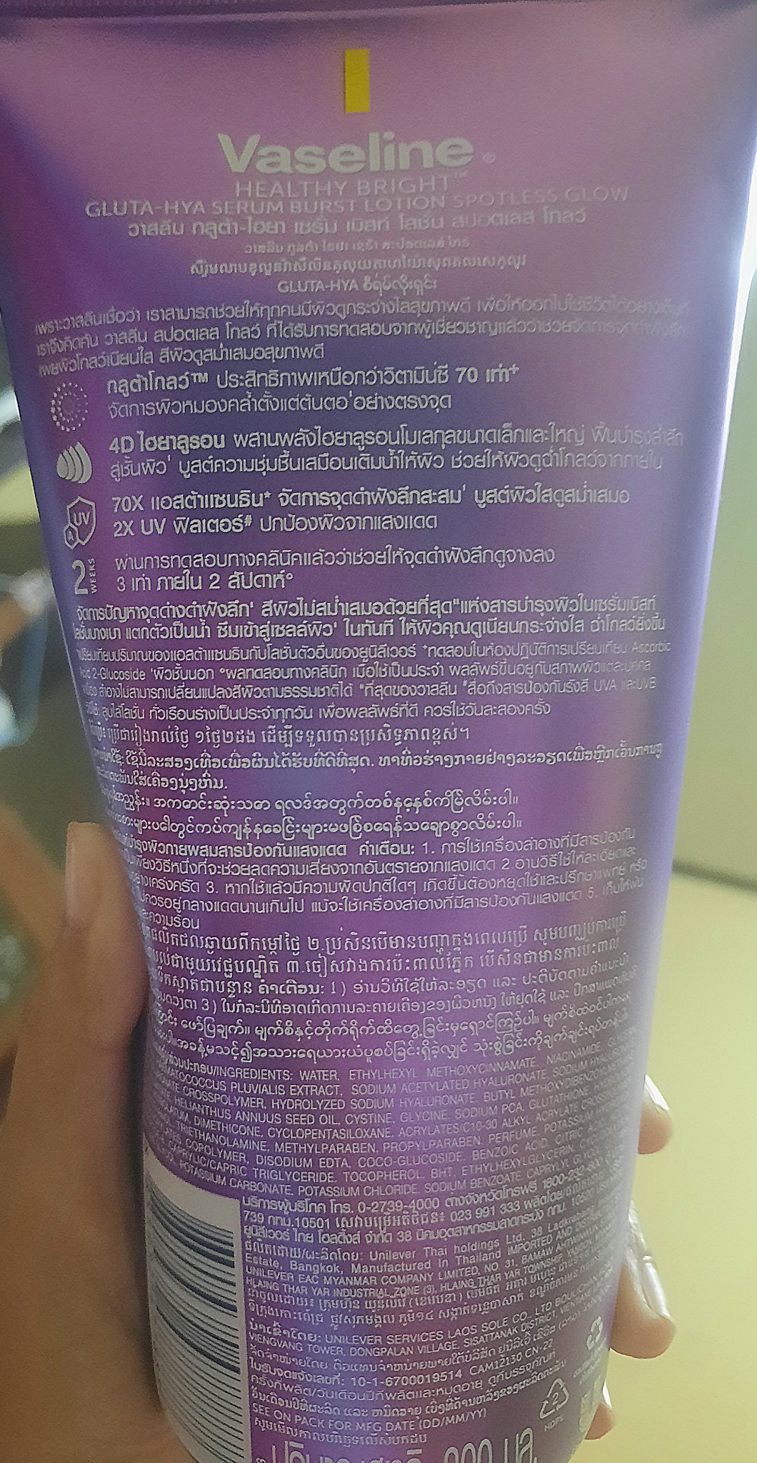 เพิ่งไปซื้อวาสลีนสูตรสีม่วงในเเอปส้มเห็นด้านหลังมีหลายภาษาไม่ใช่เเค่ไทยเลยอยากรู้ว่าเป็นของเเท้ไม่