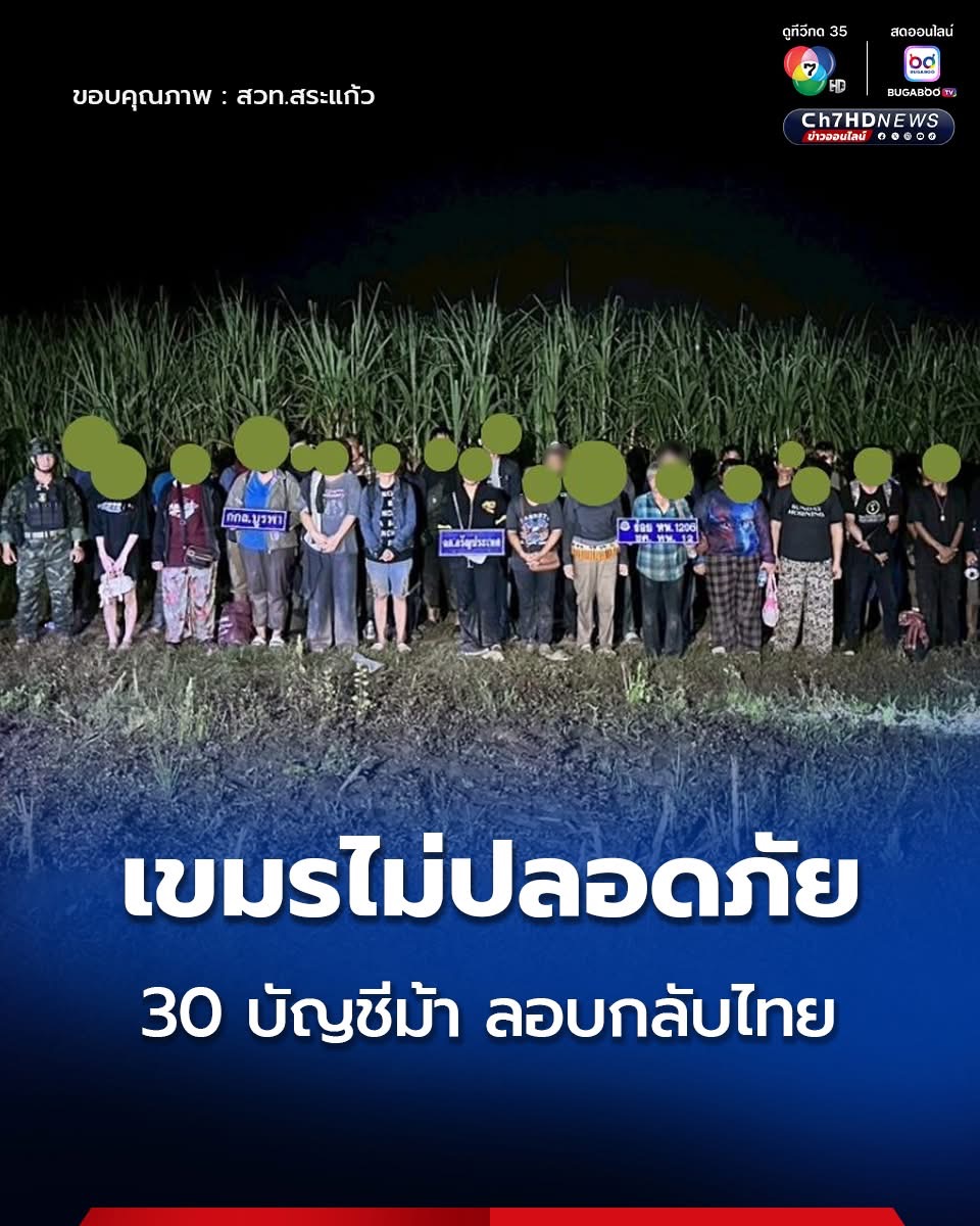 สแกนหน้าเสร็จถีบหัวส่ง 30 คนไทย บัญชีม้าเขมร เดินลัดเลาะผ่านช่องทางธรรมชาติกลับเข้าไทย จากเขมร