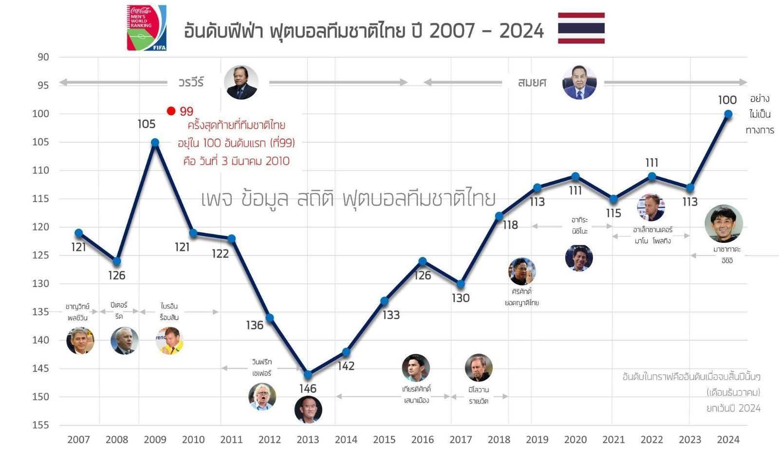 อันดับ อันดับ 96 ของโลก จะเท่ากับที่ทีมชาติไทยทำได้ เมื่อวันที่ 24 ตุลาคม 2024 ซึ่งครบรอบ 1 ปีพอดีครับ