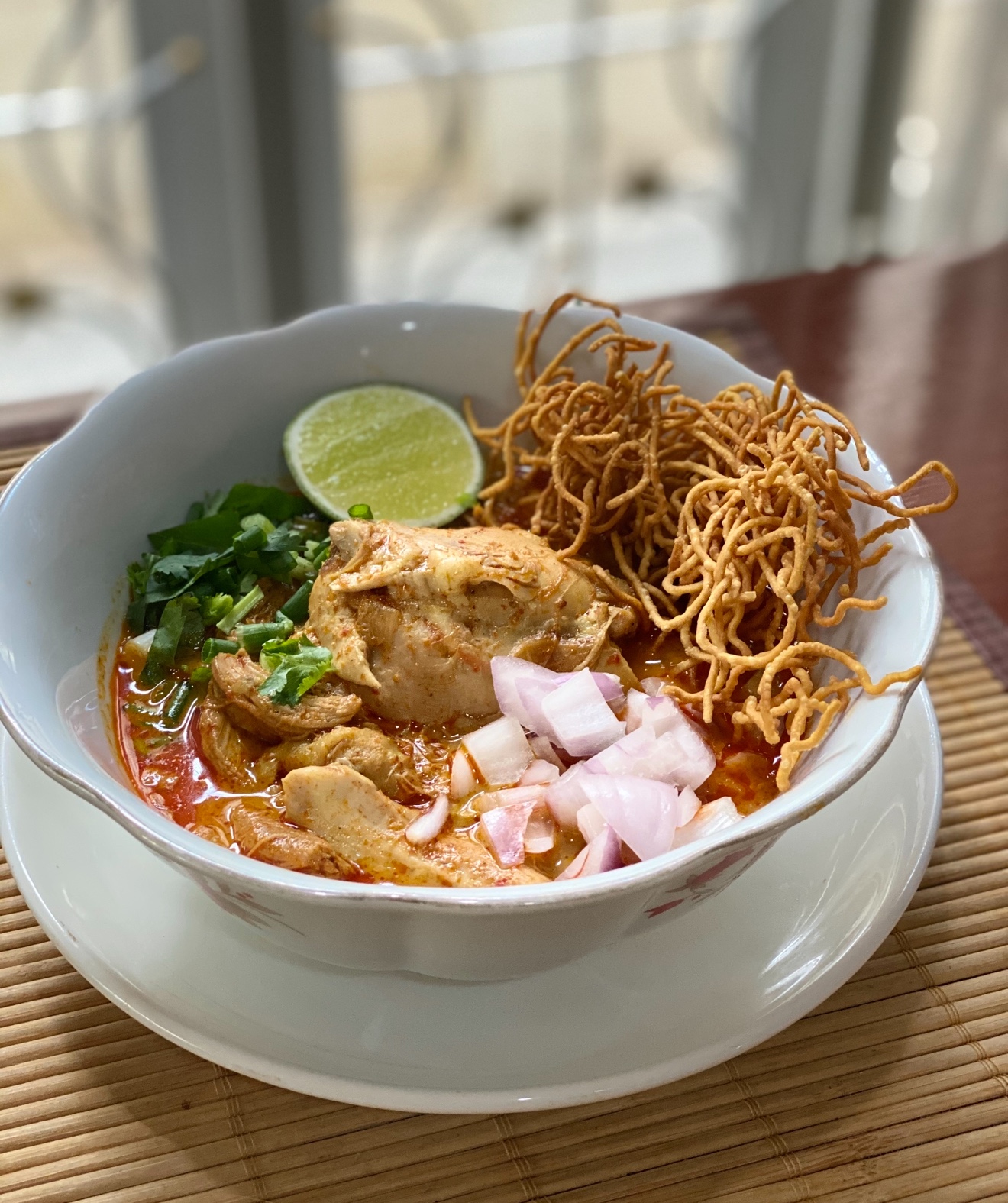 และแล้ว ข้าวซอยสะโพกไก่ก็ได้ออกมาน่าตาประมาณนี้ และเป็นอีก 1 เมนูที่ทำให้มีรายได้ในช่วง COVID19 และผลตอบรับจากลูกค้าดีมาก ลูกค้ากระซิบมาว่า “ร้านข้าวซอยดังๆก็ต้องร้องไห้นะ 55 เจอข้าวซอยร้าน Rod la Mhun(รสละมุน) และลูกค้ากำชับว่าก่อนเปิดเตาให้แจ้งเค้าก่อนเลยนะ เดี๋ยวOrder เต็ม