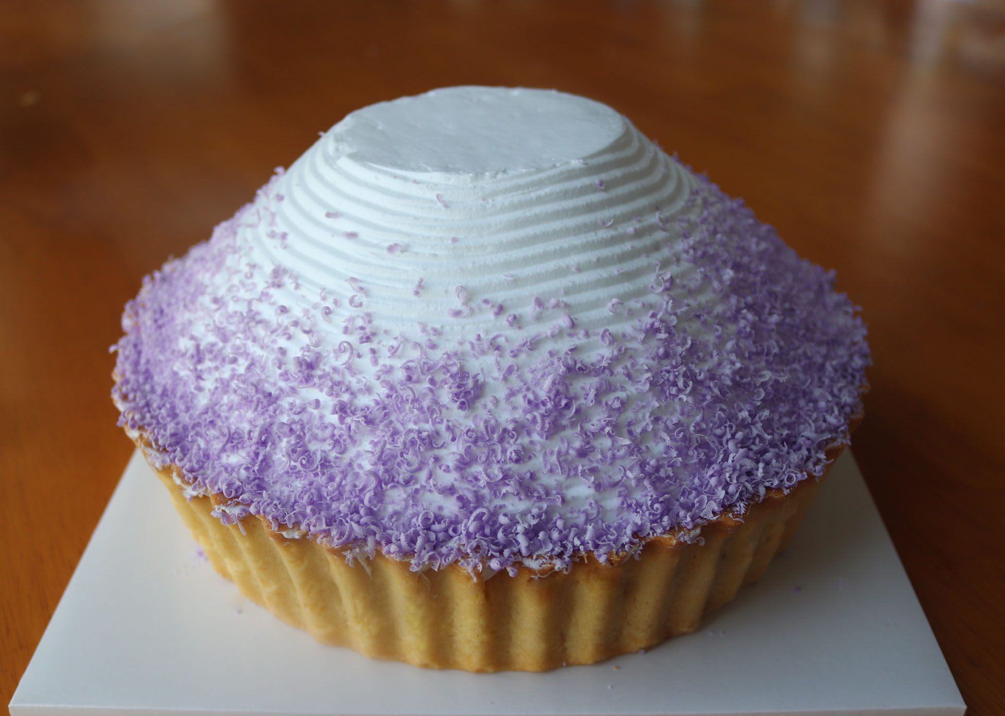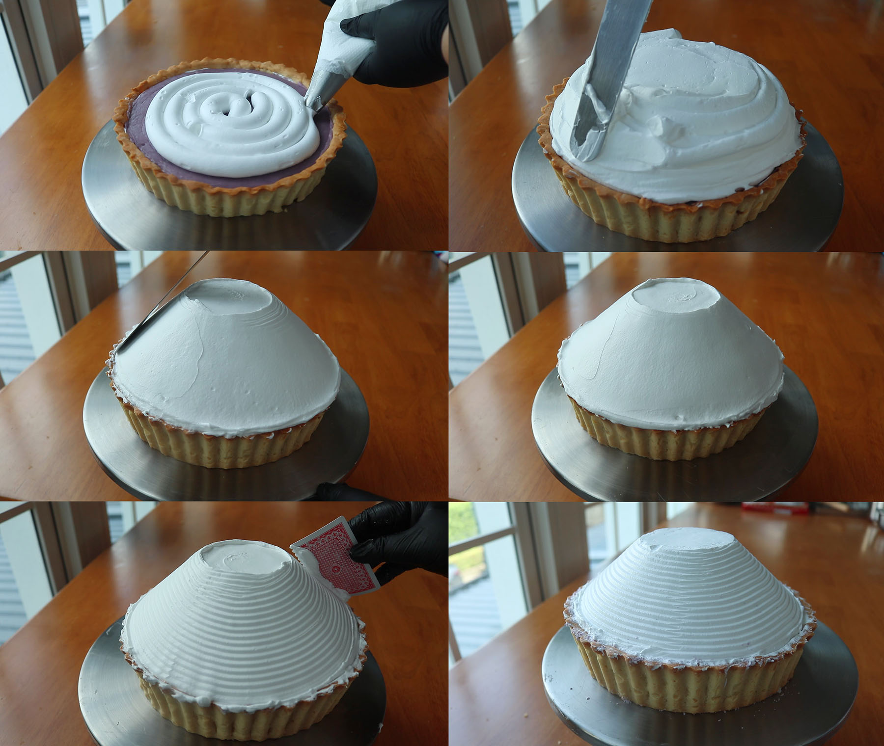 15.บีบครีมลงไป ปาดให้เป็นรูปทรงภูเขาไฟ