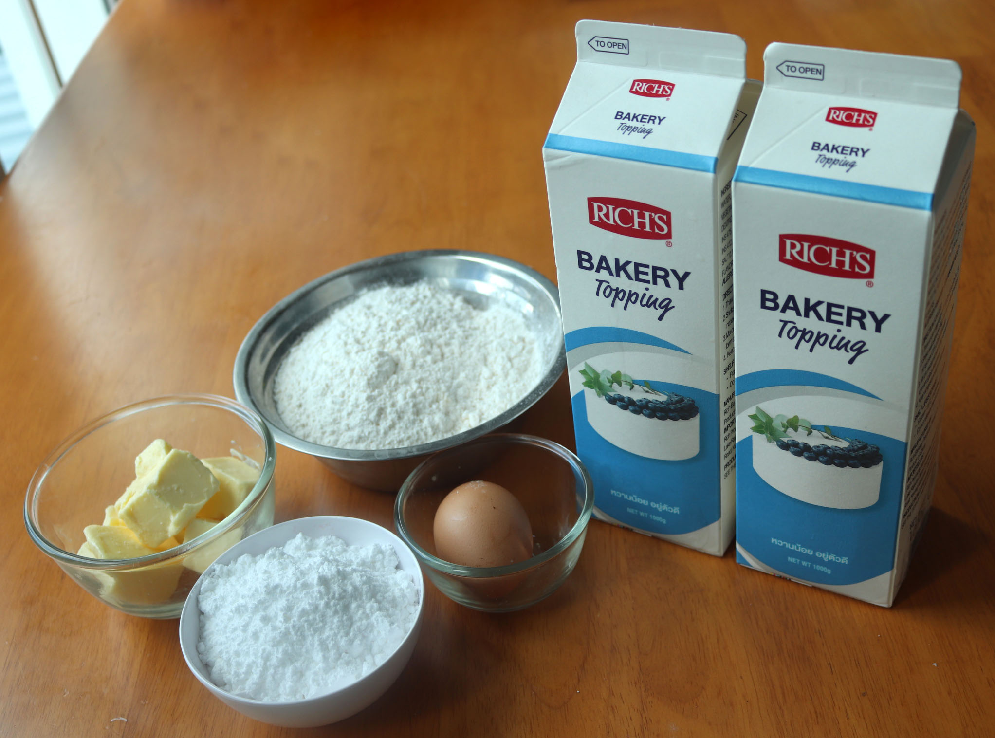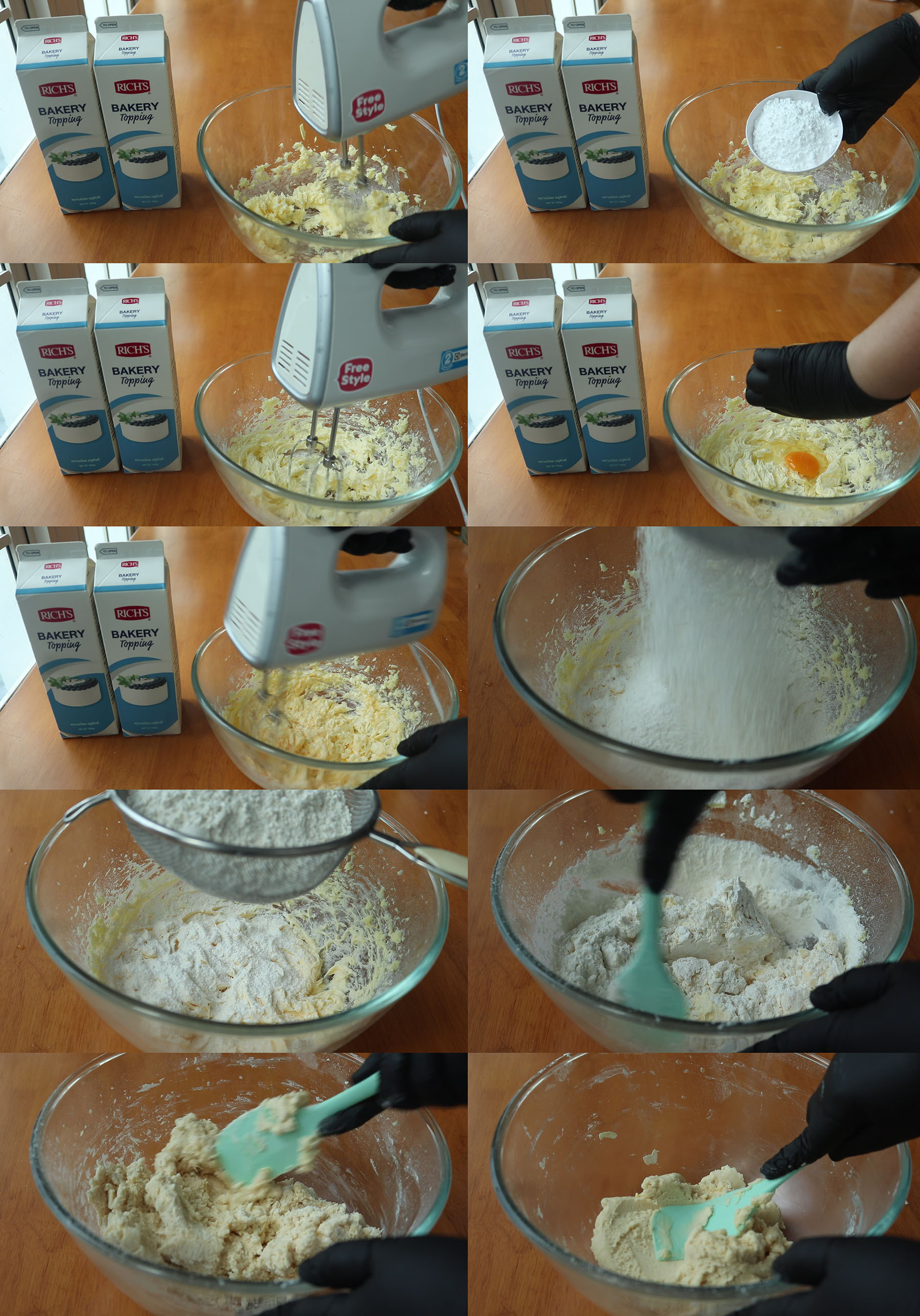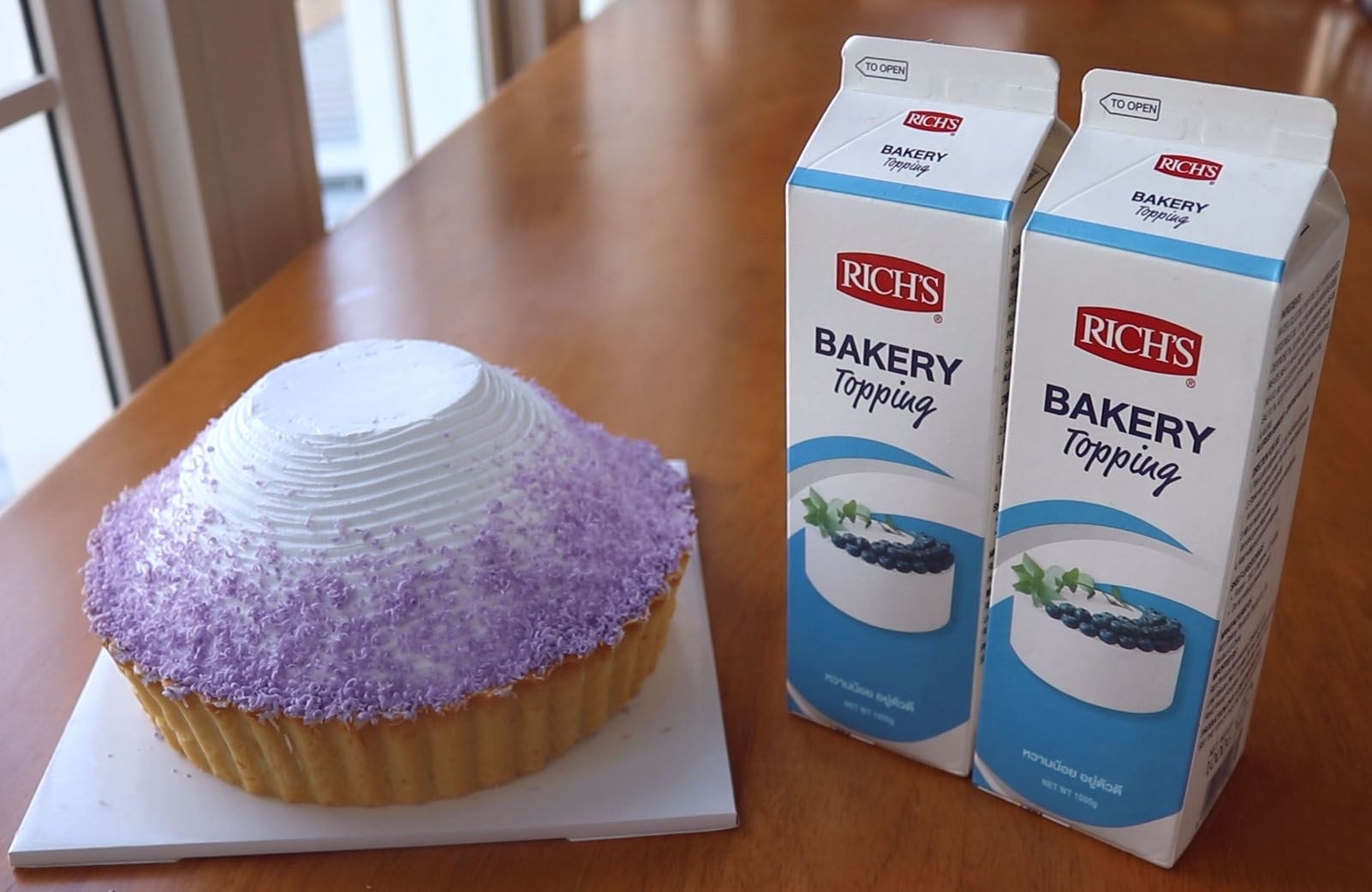 13.เทริชส์ เบเกอรี่ ทอปปิ้ง ลงไปในชามตีให้ได้ความข้นตามต้องการ ริชส์ เบเกอรี่ ทอปปิ้ง ผลิตภัณฑ์ตัวใหม่จากทางริชส์ เป็นวิปปิ้งครีมหวานน้อย อยู่ตัวสูง เนื้อครีมเนียนตีขึ้นฟูง่ายถึง 4.5 เท่า เลยทำให้ได้ปริมาณขนมเยอะขึ้นลดต้นทุน เหมาะสำหรับการปาด ตกแต่ง ทำได้หลากหลายเมนู ผสมสีดี และทนกรดผลไม้