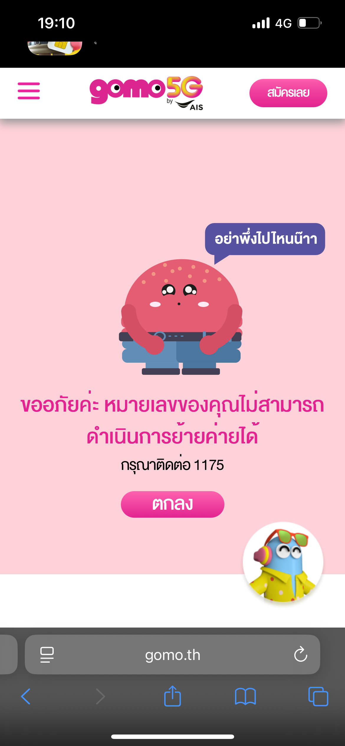 ย้ายค่ายจาก AIS ไป gomo ไม่ได้