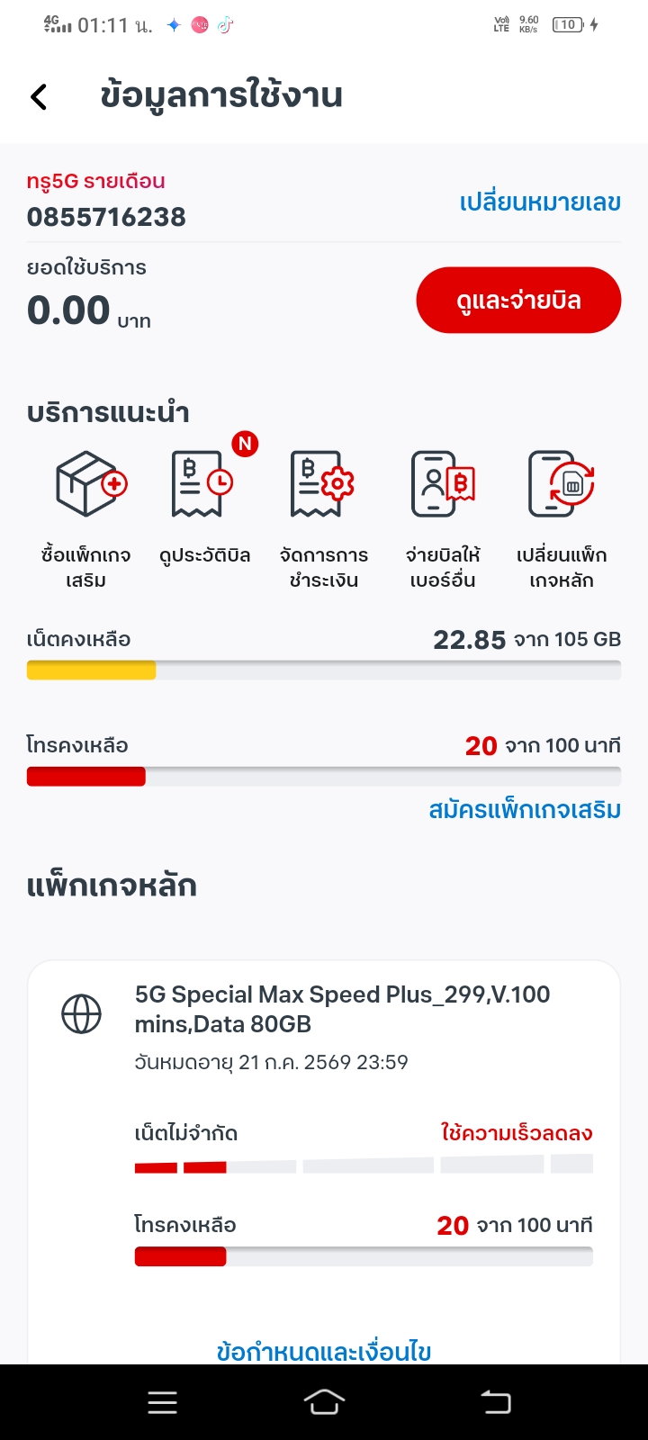 ค่ายทรู รบกวนตรวจสอบให้หน่อยค่ะ ว่ายังไงคะเกี่ยวกับค่าบริการแพ็คเกจเสคิม
