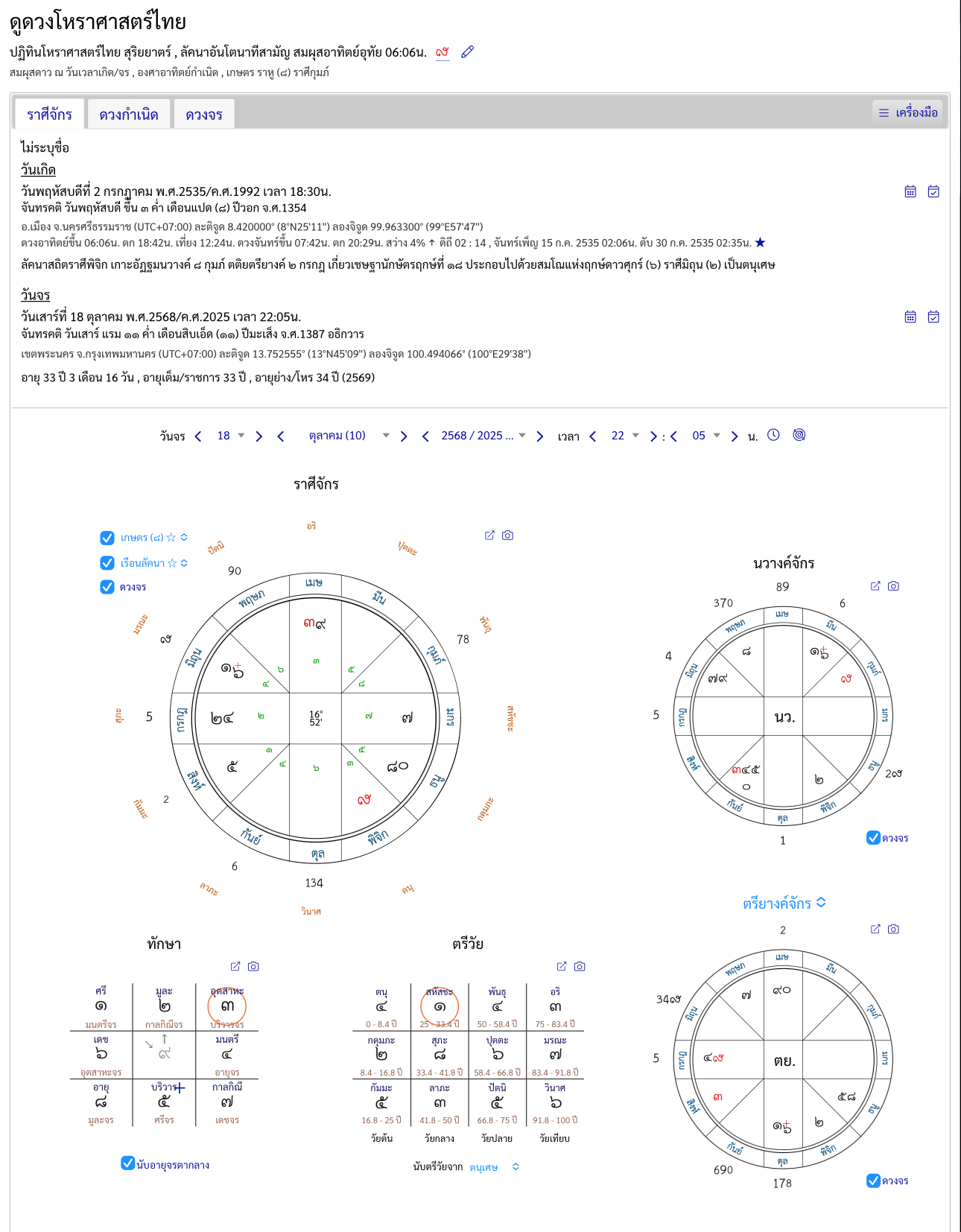 เราเป็นคนลัคนาธนู มีดาวจันทร์เจ้าเรือนมรณะมากุมลัคน์ ไม่มีมาตรฐาน แต่ในนวางค์จักรได้จุลจักร ในภพปัตนิ มีดาวพฤหัสเจ้าเรือนตนุ พันธุ ในราศีมิถุน ได้มาตรฐานประ + อุจจาวิลาส ในนวางค์เป็นราชาโชค และมีดาวร