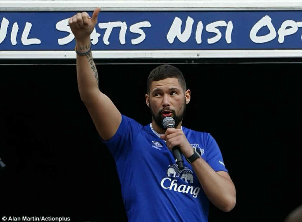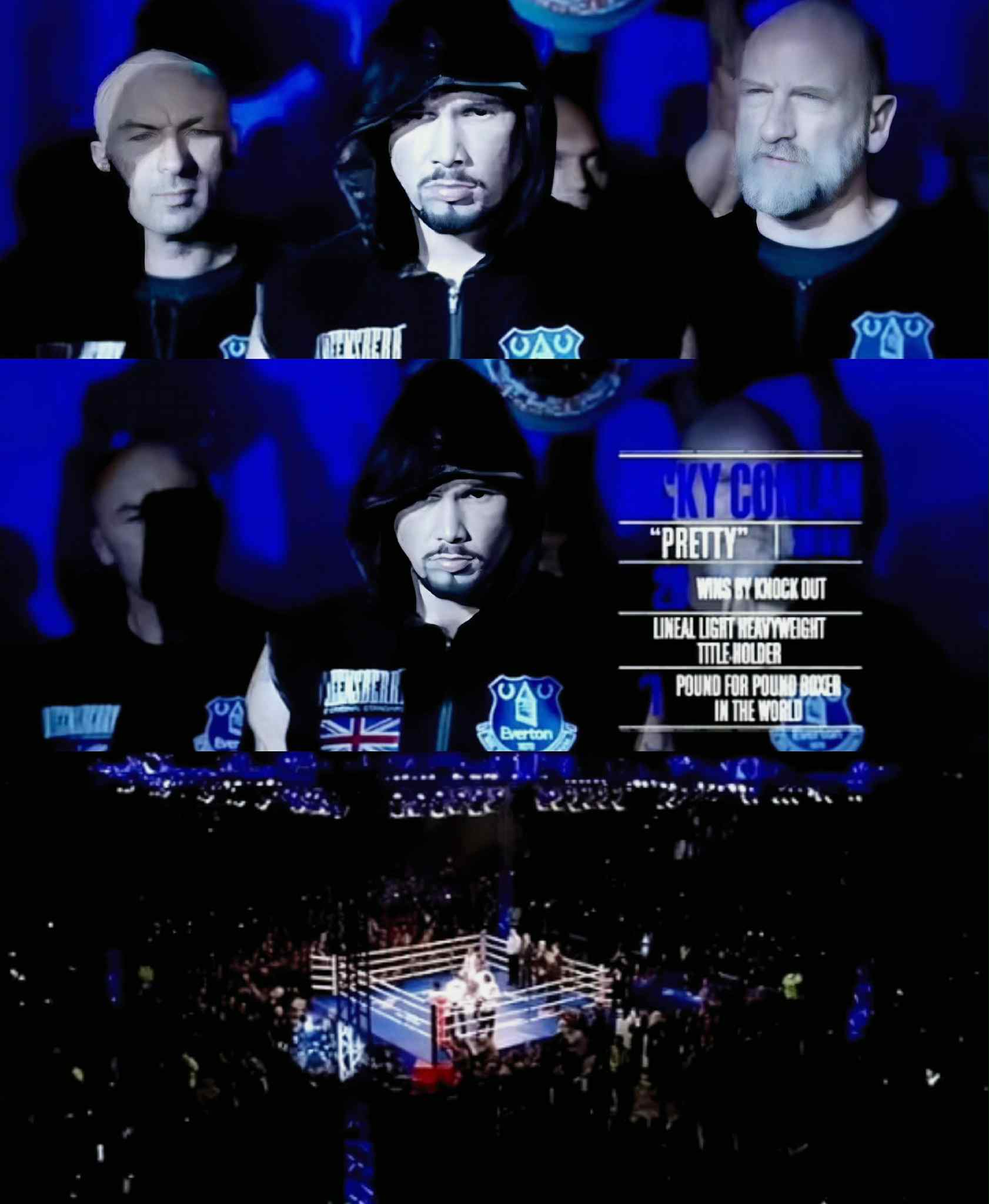 Ricky ในเรื่องใส่เสื้อเอฟเวอร์ตัน ท่ามกลางแฟนบอลในสนาม
