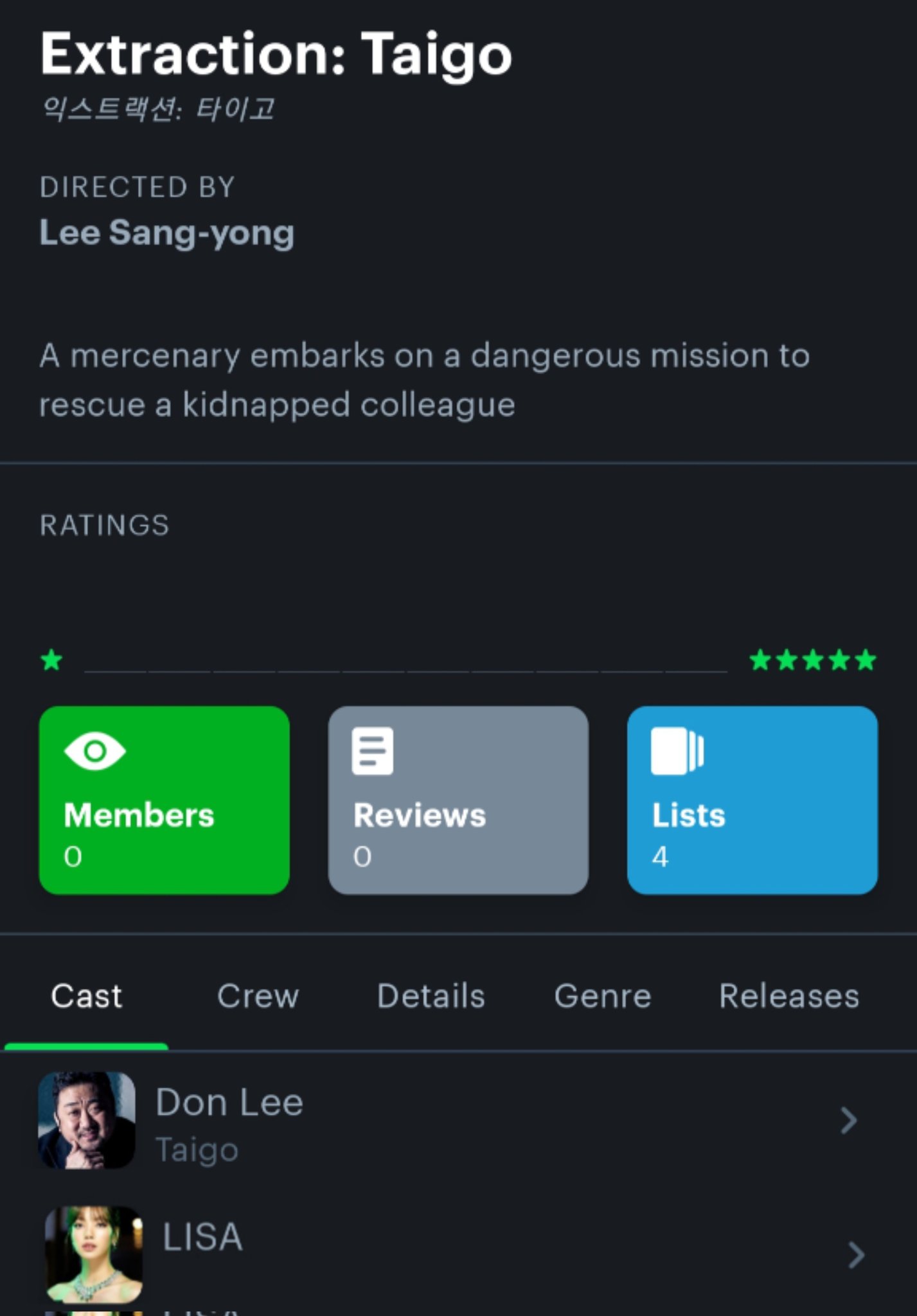 ซูเปอร์สตาร์ระดับโลก ลิซ่า (Lisa) จากวง BLACKPINK กำลังจะรับบทแสดงหลักครั้งที่สองในชีวิต โดยจะร่วมแสดงกับ มาดงซอก หรือที่รู้จักกันในชื่อ ดอน ลี (Don Lee) และ อีจินอุค (Lee Jin Wook) ในภาพยนตร์แอ็กชันฟอร์มยักษ์ของ Netflix เรื่องใหม่ชื่อ “Extraction: Taigo” ซึ่งรายงานข่าวนี้ถูกเผยแพร่ครั้งแรกโดยสำนักข่าวเกาหลี IZE เมื่อวันที่ 15 ตุลาคม