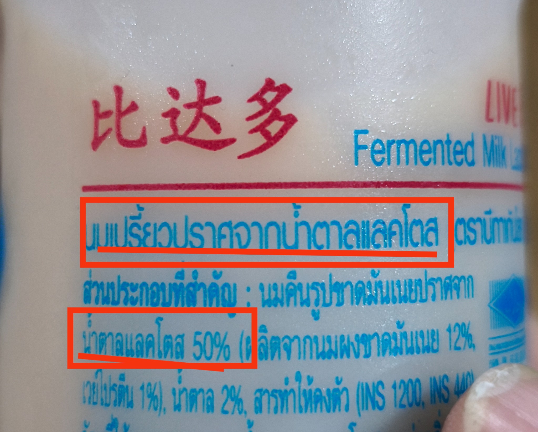 "ส่วนประกอบสำคัญ ..........น้ำตาลแลคโตส 50%"