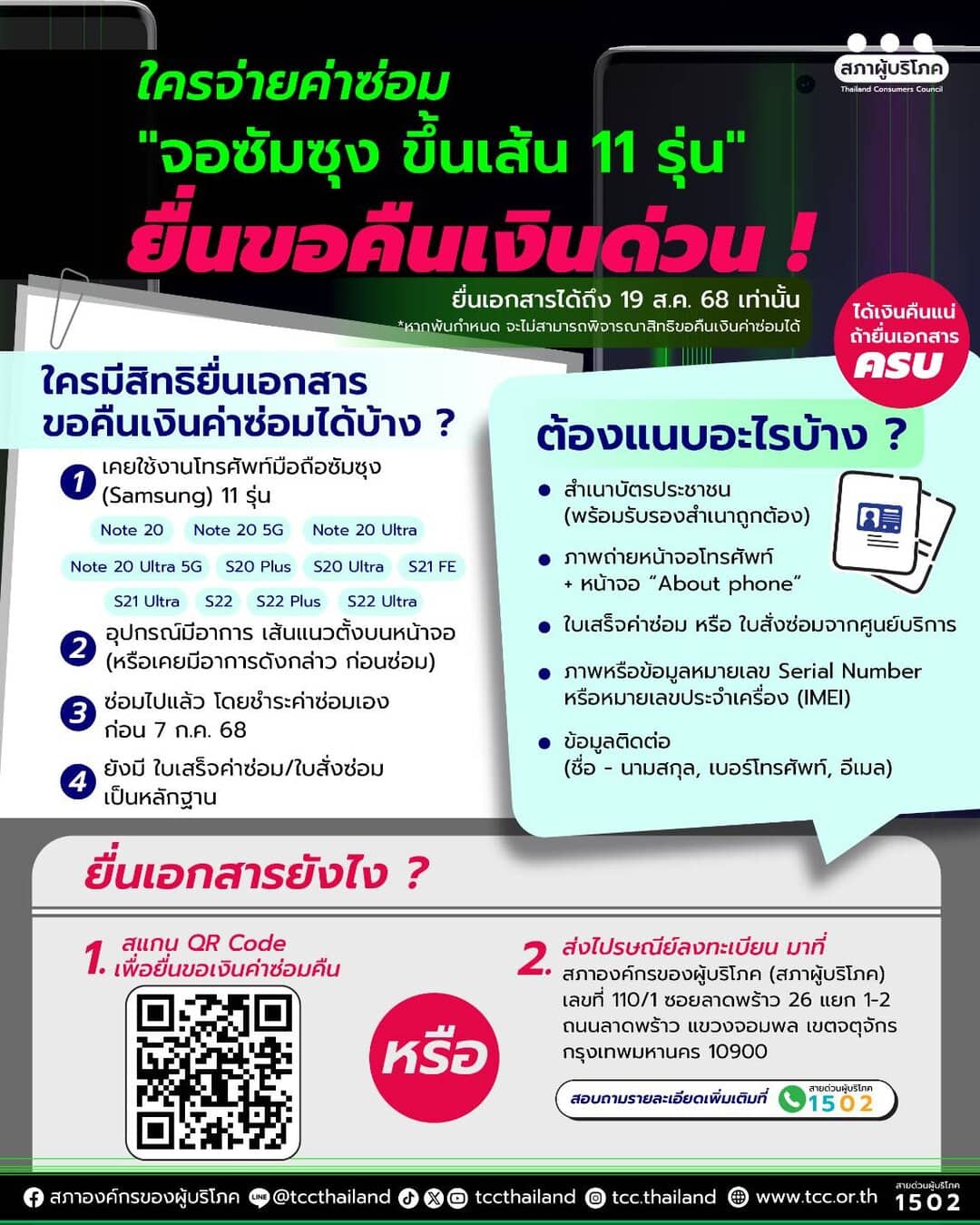 เยียวยาคืนเงินซ่อมจอเป็นเส้น Galaxy Note20 Ultra